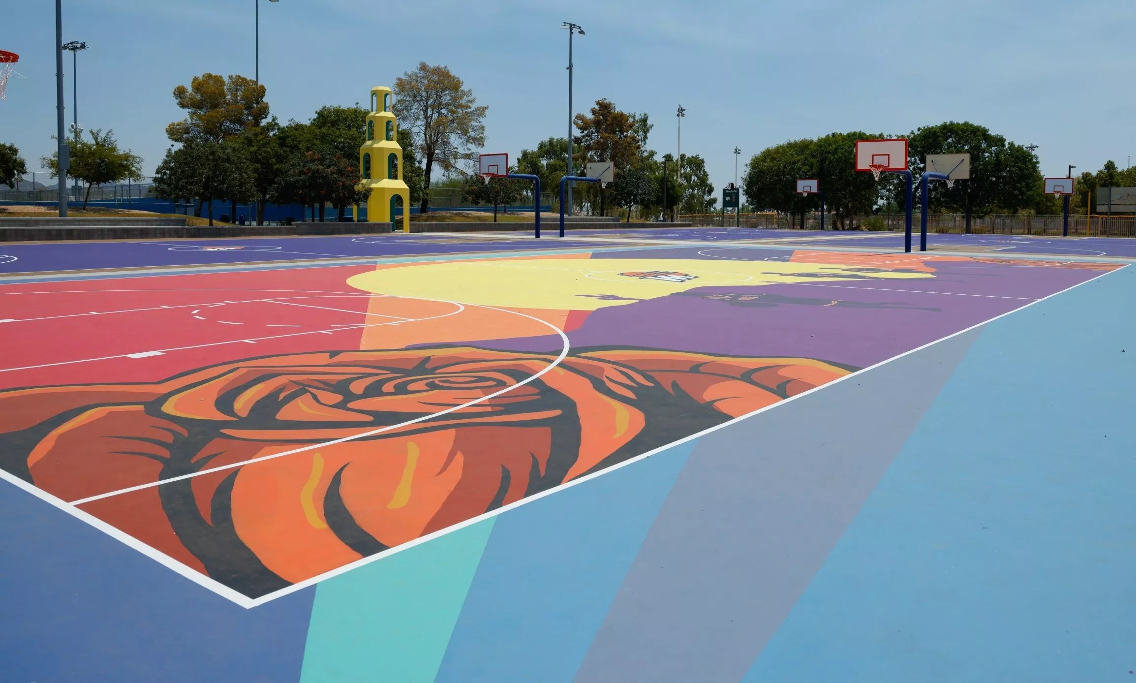 After three weeks, Cauley and the Mercury unveiled the mural and the four refurbished courts at the Rose Mofford Sports Complex last Wednesday, just in time for the WNBA All-Star weekend, which takes place at Footprint Center in downtown Phoenix. The events kick off Friday night with the skills challenge and 3-point contest, followed by Saturday’s game featuring a matchup between the WNBA All-Stars and the U.S. Women’s National Team, which will represent the country in the upcoming Summer Olympics in Paris.