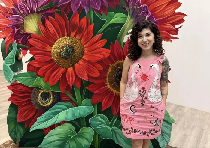 In “Con Cariño Siempre,” Ariana Enriquez’s giant, colorful flowers and vibrant animals are symbols of family.