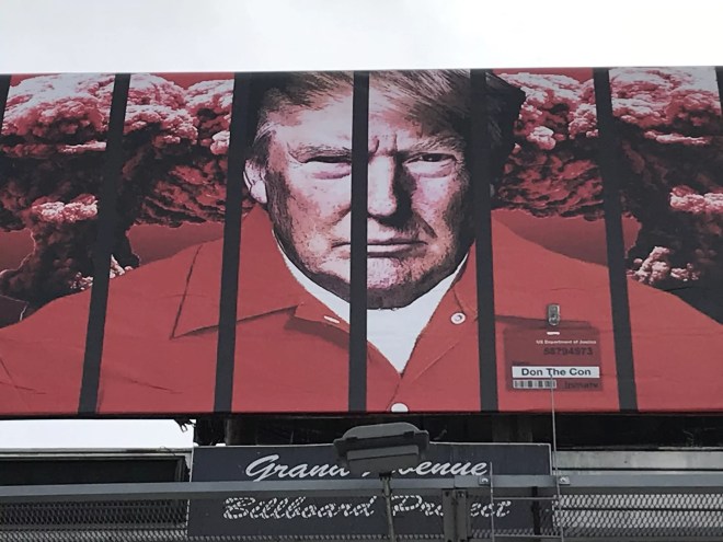 It probably doesn’t have anything to do with the creative space’s location beneath a controversial anti-Trump billboard, though.