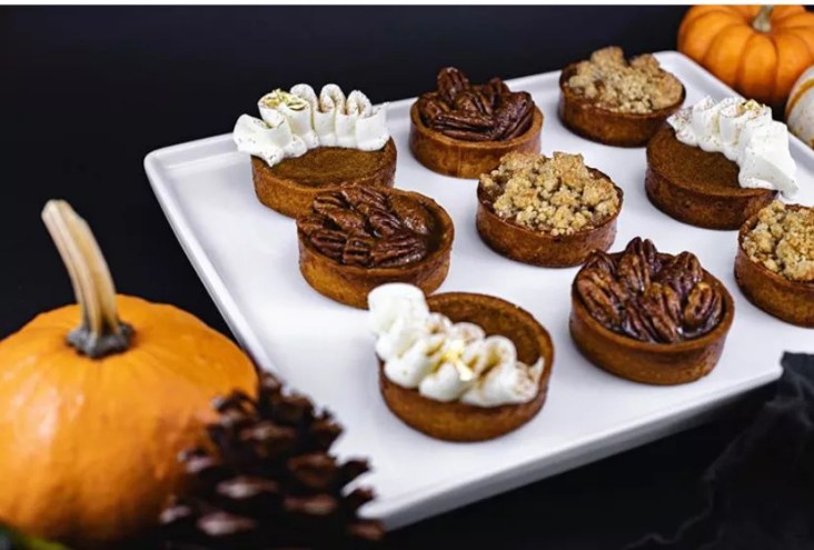 A young pastry chef offers beautiful French pastries, cookies, and quiches.