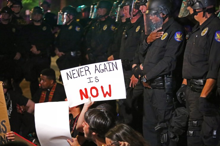 Jorge Soria was speaking with an Arizona Mirror reporter when a Phoenix police officer ran up, grabbed him by the neck, and dragged him into a puddle.