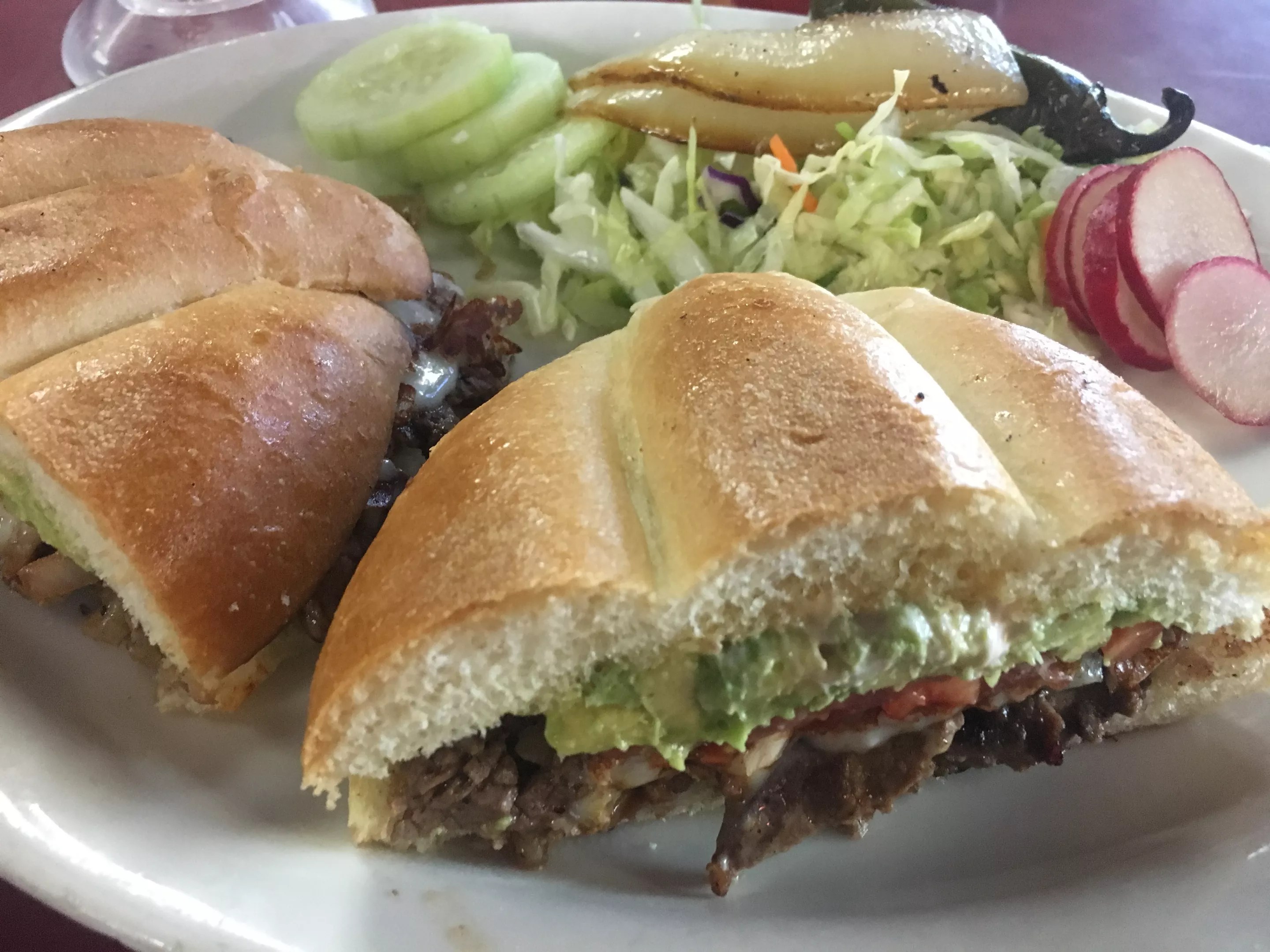 “Torta” is in the restaurant’s full name. It made sense to go for one. After ordering ceviche tostadas and what I thought was a watermelon agua fresca, I asked my waitress what her favorite torta was. She pointed to the Norteña de Res.