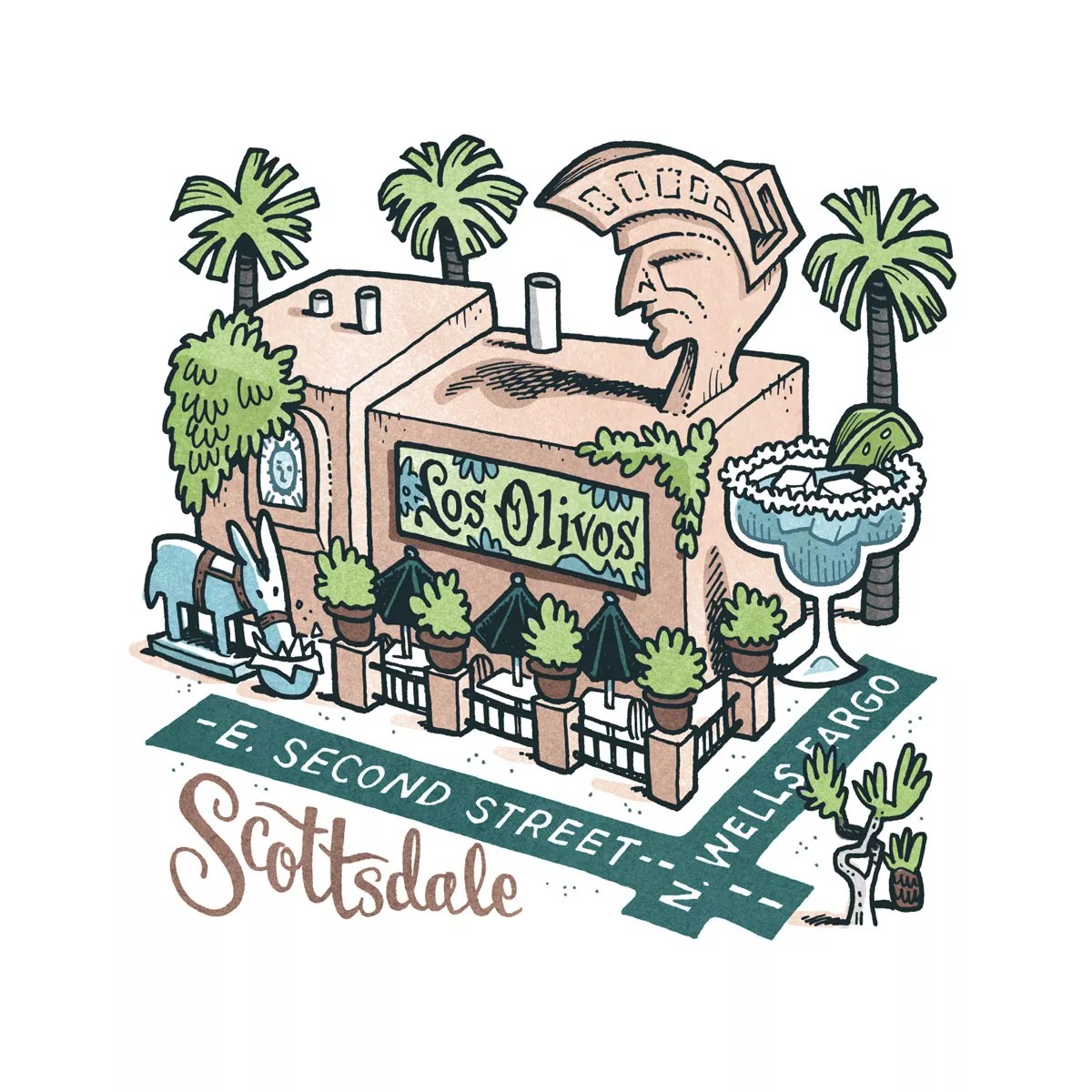 All the overpriced junkola began its invasion in 1951 under the watch of gas jockey-turned-mayor Malcolm White, and the more vulgar nightclubs began their own infestation in the 1990s, but an element of a more innocent time survives: Los Olivos Mexican Patio, founded next to a metal shop and named for Scott’s olive trees by the immigrant Corral family – one of the first Mexican families in town – who came up from Sonora to farm cotton. If you’re looking for the classic elements of Yanqui Mexican, you will find them here in generous quantities: chips and salsa, rocks-and-salt margaritas with triple sec, albondigas soup, combo platters with rice and beans. You’ll also have the pleasure of participating in a ritual dining experience known by a vanishing breed of longtime Arizonans.