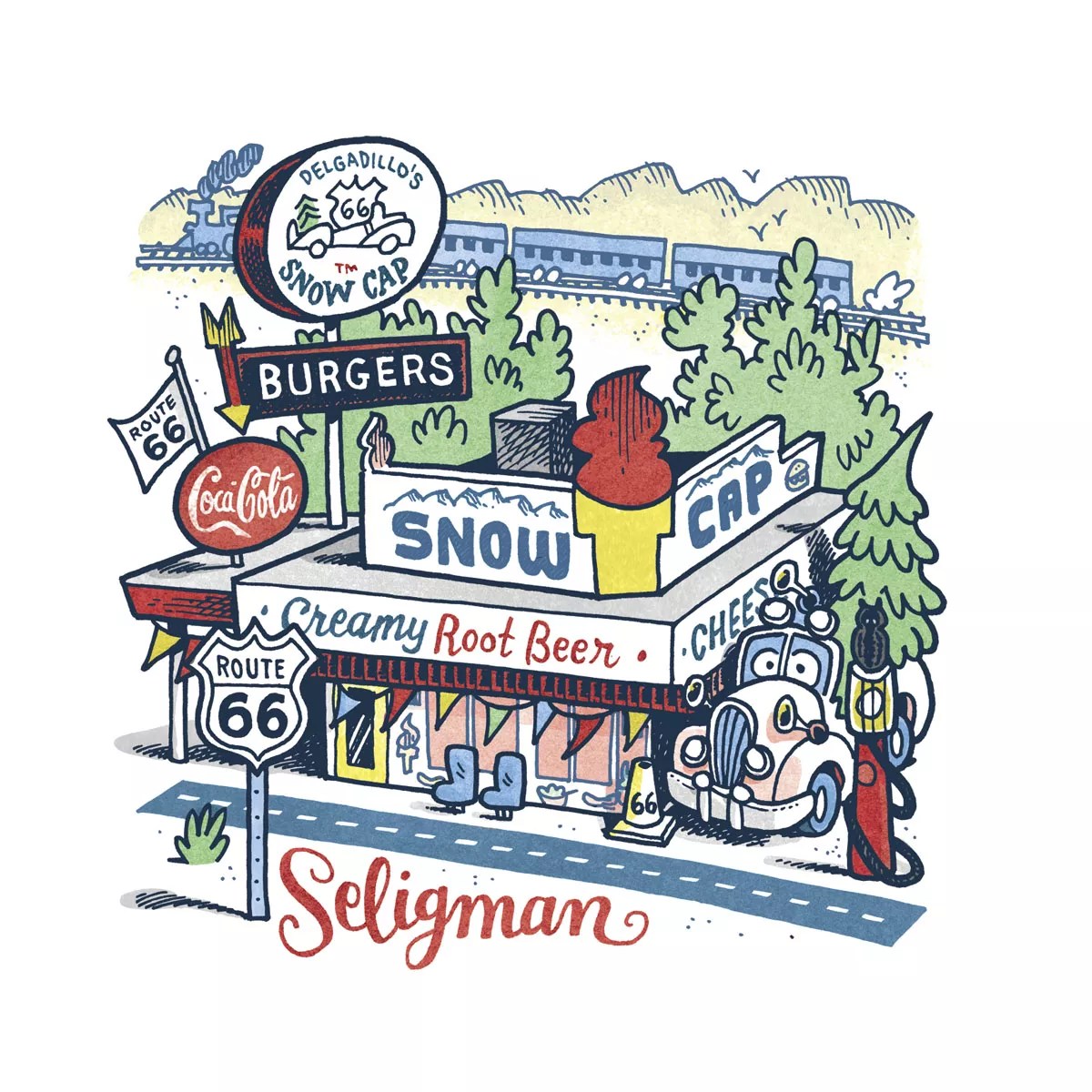Seligman almost died after Interstate 40 routed cars from its downtown in 1978, but the Snow Cap – now patronized by foreign tourists as much as locals – preserves a specific time and culture of Arizona eating: the majestic era of the roadside ice cream cone and grilled delectables wrapped in white paper.