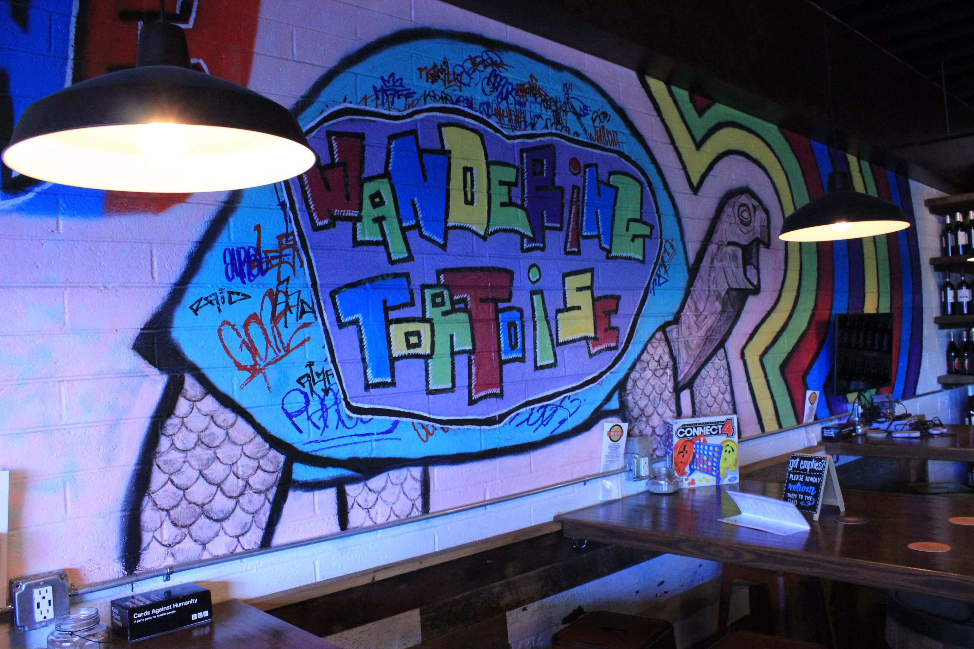 When you walk into The Wandering Tortoise beer shop and taproom and notice the repurposed barnwood wall, the old-school board games scattered around, and at least three dudes with long, grizzled beards, your first thought might be, “Have I been here before?” But when you plop down at its expansive wooden bar and gaze up at the beer menu, you’ll know you’ve entered a unique and supremely supplied craft beer paradise. The Wandering Tortoise is also an avid supporter of local food trucks, which on any given day, might be parked in front, ready to satisfy that inevitable drunken craving. The to-go beer case is always stocked to the glass with many more great options if you’re trying to impress the next person opening your fridge.