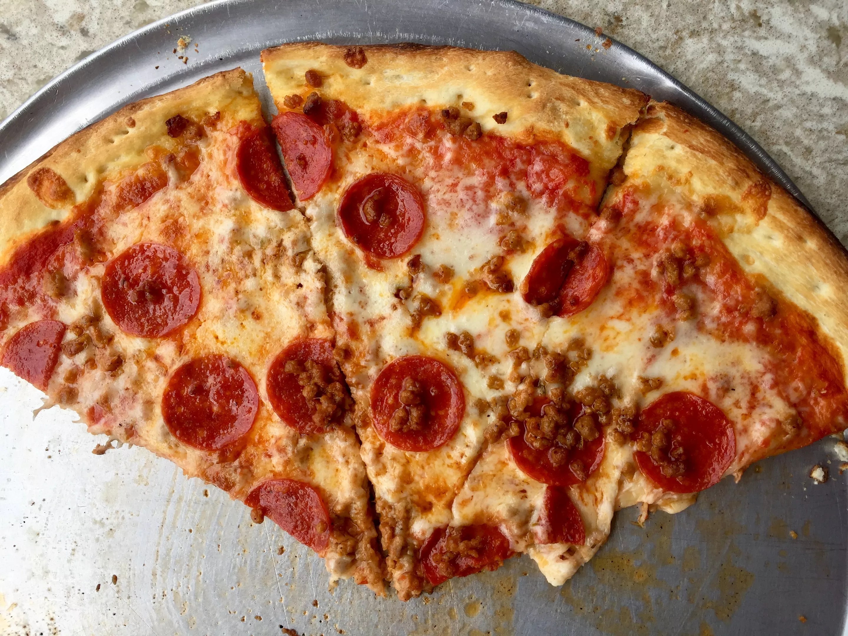7333 East Shoeman Lane, ScottsdaleIt’s not totally out of the ordinary to see gals in barely-there clothing or dudes on the prowl ordering pizza at the counter at Gus’ New York Pizza Lounge. This place is in bar central, after all, with the nonstop thump-thump-thump of bass constantly going. Customers stumble in for a slice or order a whole pie any night of the week until 2:30 a.m. Neither the menu nor the no-frills vibe is going to win any prizes, but at least the pizzas, wings, and toasted subs will soak up some of that alcohol to make the next day a little more tolerable. Slices at Joe’s New York Pizza. Allison Young