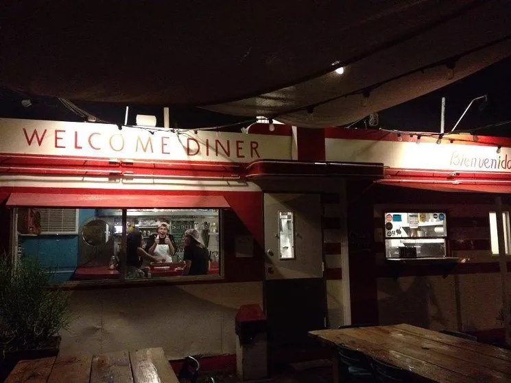 Cozy up on Welcome Diner’s patio for some late-night biscuits and gravy.