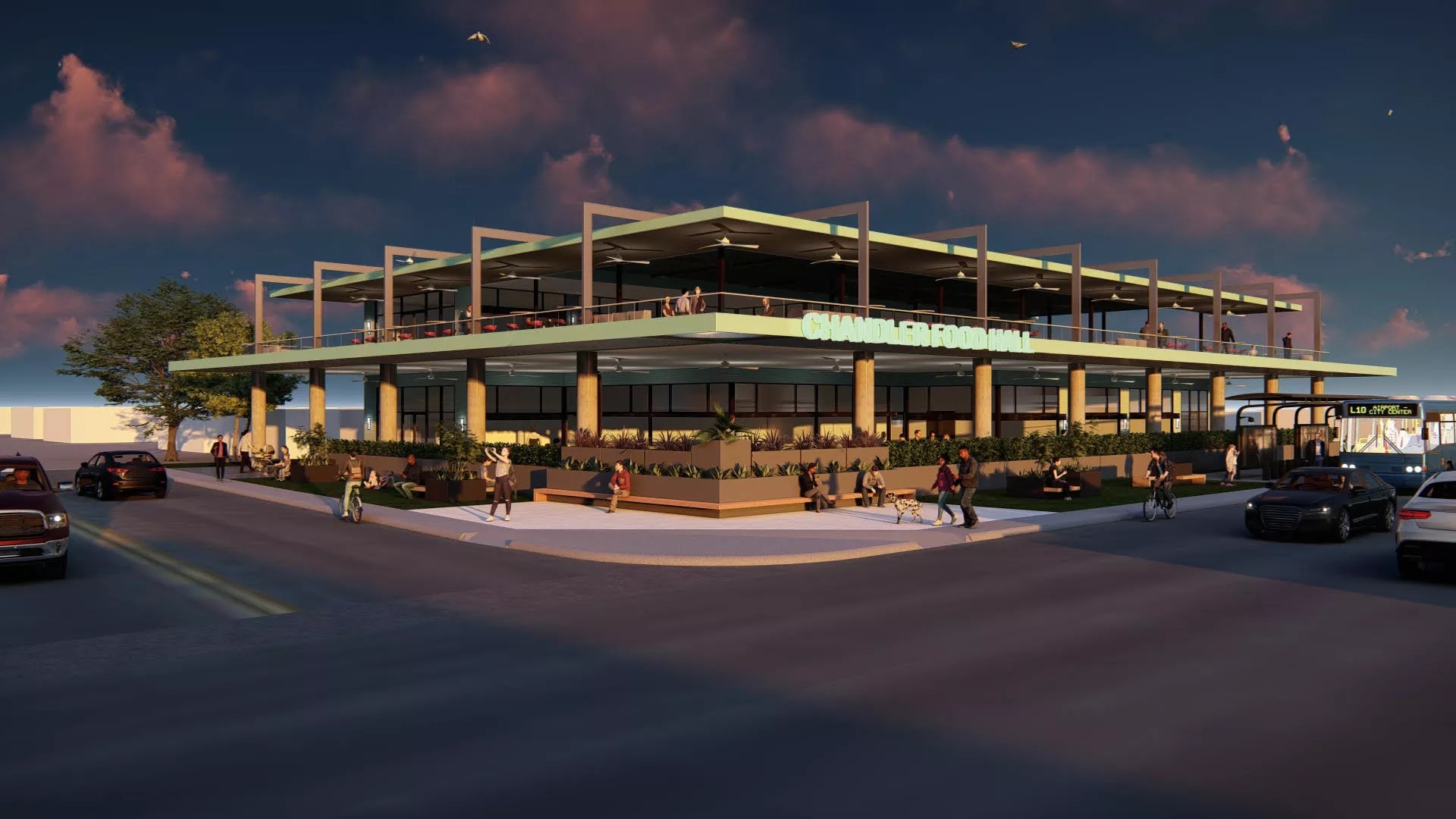 The Chandler food hall is set to be built at the southwest corner of Chicago and Oregon streets. The 15,000-square-foot space is proposed to be two stories, featuring indoor and outdoor seating, an expansive bar and a rooftop featuring lawn games and areas to lounge.