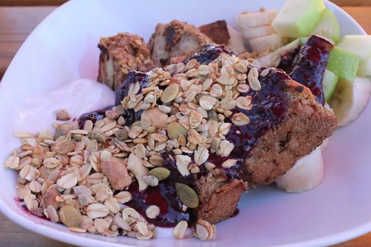 The Uprooted kitchen in Gilbert offers a genuinely surprising plant-based breakfast. You can order breakfast sandwiches with tempeh instead of meat, black bean burgers, or a quinoa breakfast bowl. A buckwheat crepe comes with a litany of fillings including hummus, cauliflower, various vegetables and nuts, and dates from Agritopia. If you’re into French toast, Uprooted Kitchen’s take is a must. Uprooted transforms Proof Bread sourdough into French toast using a bake rather than a sizzle. This creates lightness, and all the other ingredients, including blueberry preserves, granola, and coconut yogurt, keep to this baseline. The Uprooted Kitchen is a great spot for people into plant-based foods, and people who keep open minds.