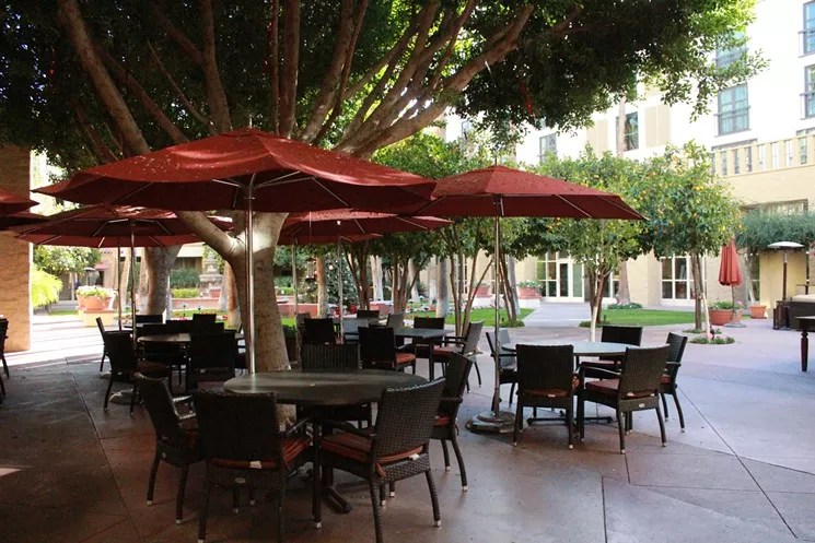 Open patio at Mission Grille in the corner or the citrus tree shaded courtyard at Tempe Mission Palms.