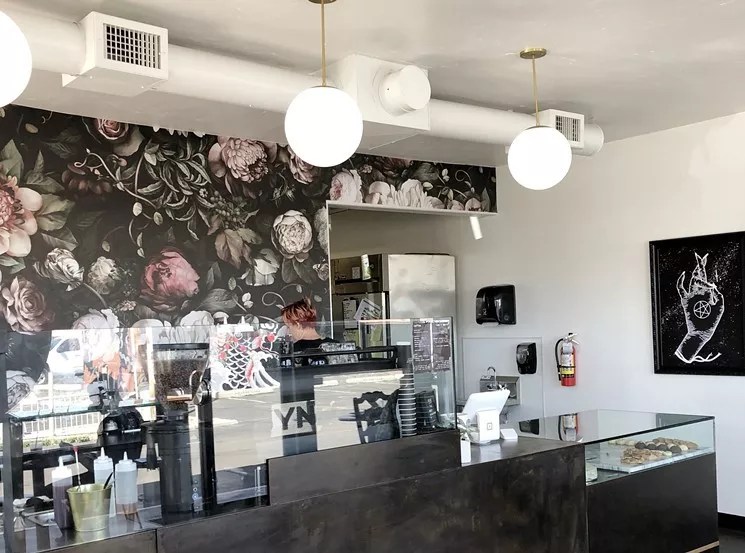 The team behind veg-friendly staple The Coronado recently opened Dark Hall Coffee, which specializes in plant-based drinks and pastries. You’ll see gorgeous floral wallpaper behind the bar and a triptych of mystical-looking skeleton posters. Stay for the fully vegan menu, with coffee and tea drinks featuring housemade nut milks and oat milk. The cortados, cappuccinos, lattes, and more are all dairy-free. Dark Hall has some killer cold beverages like a brown sugar lemonade, espresso and tonic, and a current special called the Arizona Sunset, featuring fresh-squeezed blood orange juice and espresso. The pastry case boasts rows of salted dark chocolate chip cookies, sticky cinnamon rolls, iced shortbread topped with cornflower and marigold petals, lavender cake with periwinkle icing and rainbow sprinkles, and plenty more.
