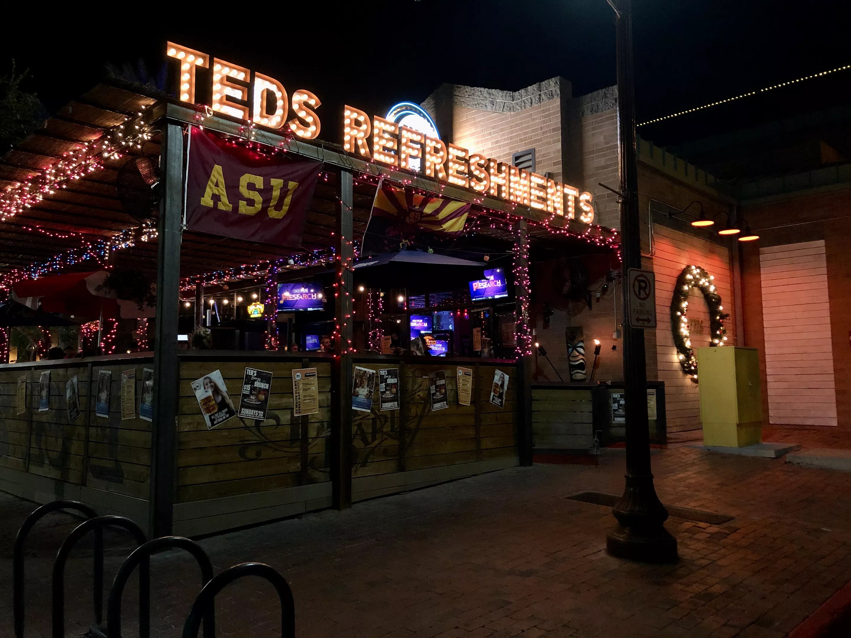If you’re afraid of actual dive bars, Ted’s Refreshments is a great primer. The former Blasted Barley Beer Company spot just off Mill Avenue in downtown Tempe is now home to a Midwestern bar-themed nightlife stop. Owned by Julian Wright – also behind the nearby Pedal Haus Brewery – Ted’s offers pool tables, pitchers, and a small menu of bar food. Plus there’s mango White Claw so, you can’t miss.