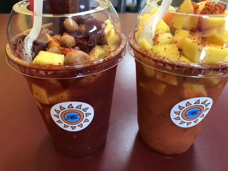 A new storefront in north Phoenix is serving raspados, Mexican cups of shaved ice, fruit, and other sweet and spicy additions. Owner Alejandra Matias says her raspados, a snack widely popular in Mexico, have a Mexico City bent. The Mangonada raspado contains mango sliced and puree, shaved ice, Tajin, lime juice, and Chamoy. This raspado is sweet, tart on two or three levels, a smidgen hot, and icy from those tiny shaved chips of frozen H20. Bites of fresh mango lend more of the cool levity that makes a raspado what it is in the first place. The Chamoyada is similar but with more of Tajin and chile prickling through. It also brings crunch from Japanese peanuts and Chamoy-spiked candy. Raspados Solaris also serves ice cream and a few savory dishes.