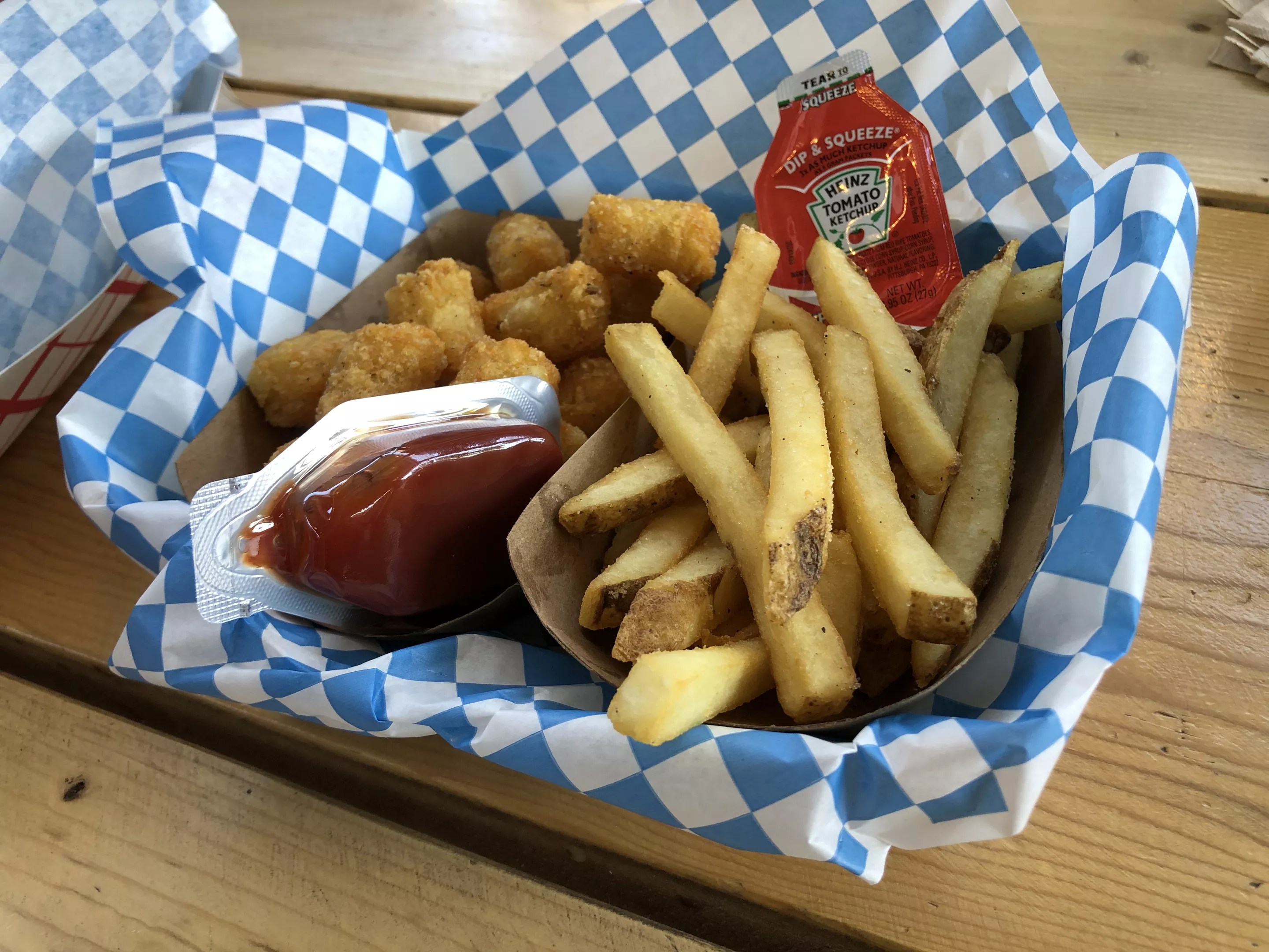 A burger. A chicken sandwich. And adjacent options: soft serve, his locally famous chopped salad, fries, and tater tots.