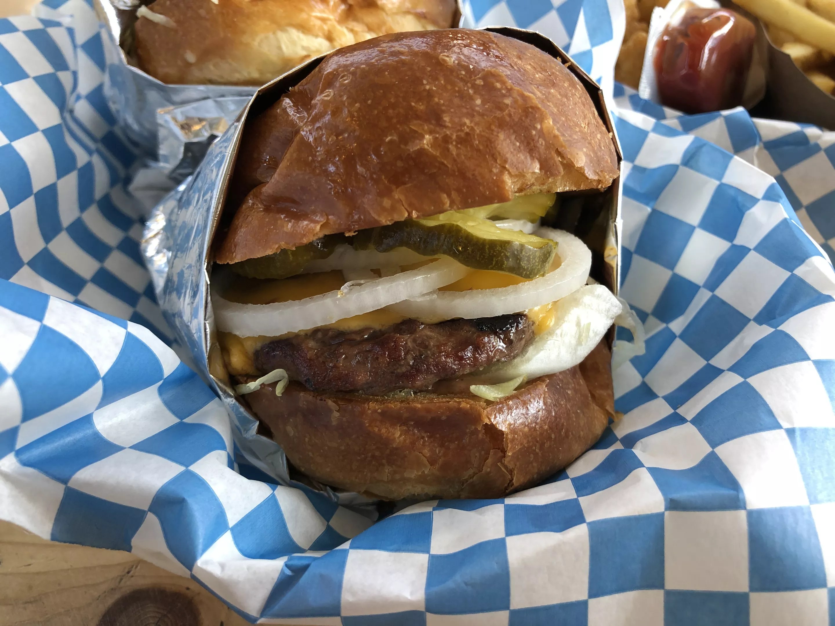 A stripped-down cheeseburger with onions, a pickle, and pale lettuce feels like a stark pivot from the amaro meatloaf, tomato vinegar, and barrel-aged cocktails at his other restaurants. Why go burger?