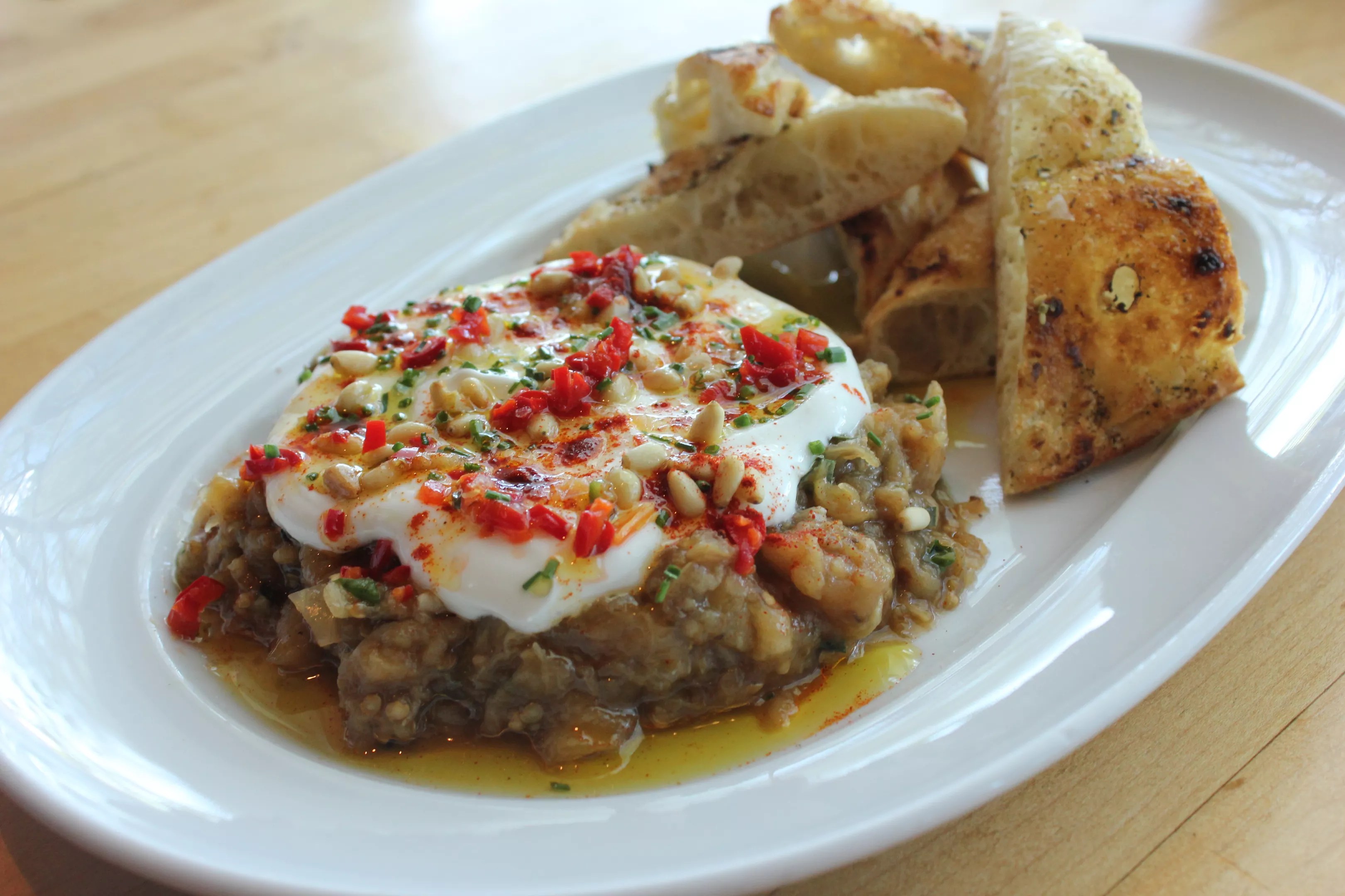Eggplant dip with yogurt, smoked paprika, and pine nuts – one of the new dishes at St. Francis.