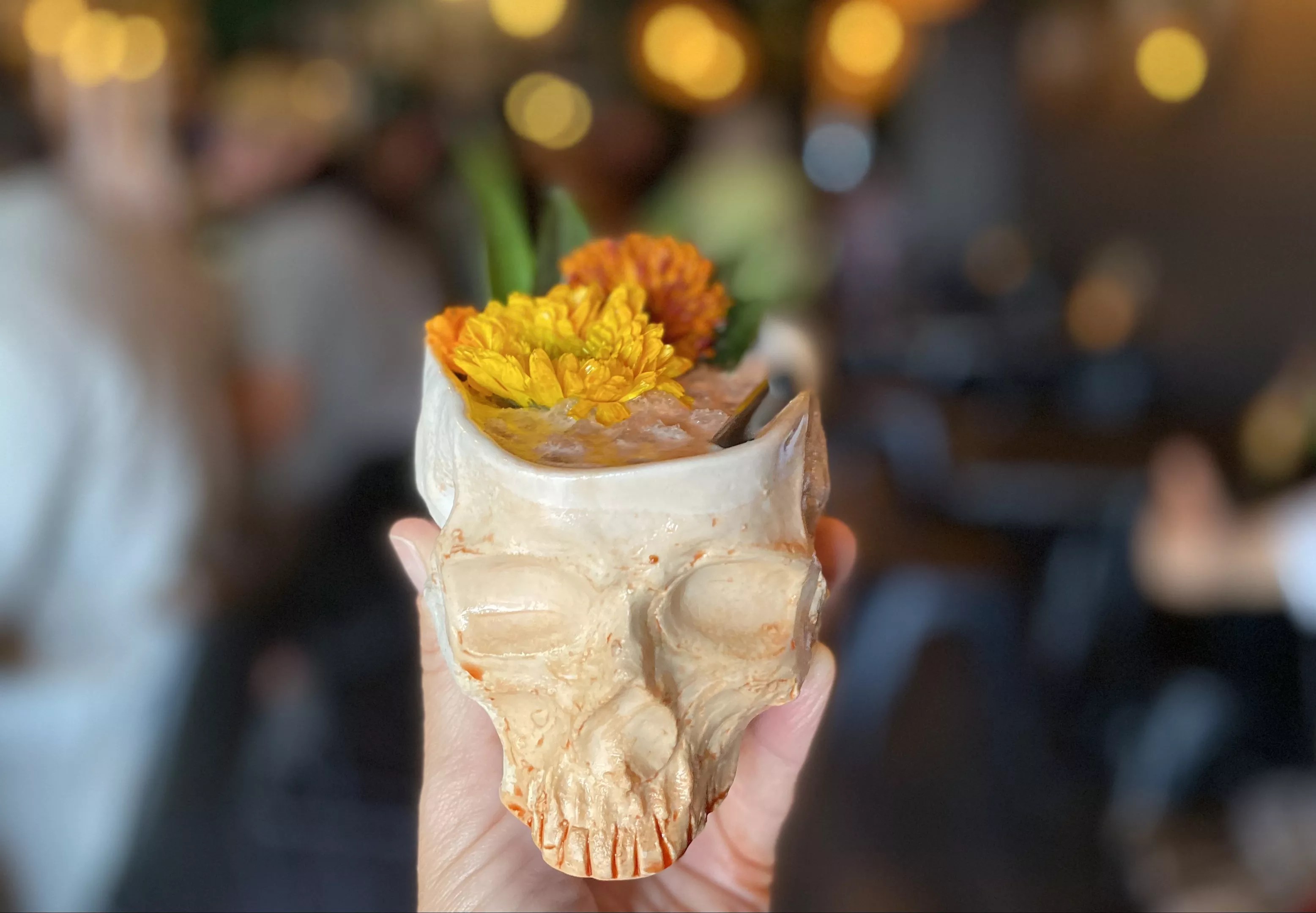 Sip Mexican spirits in a skull at Espiritu Cocktails + Comida.