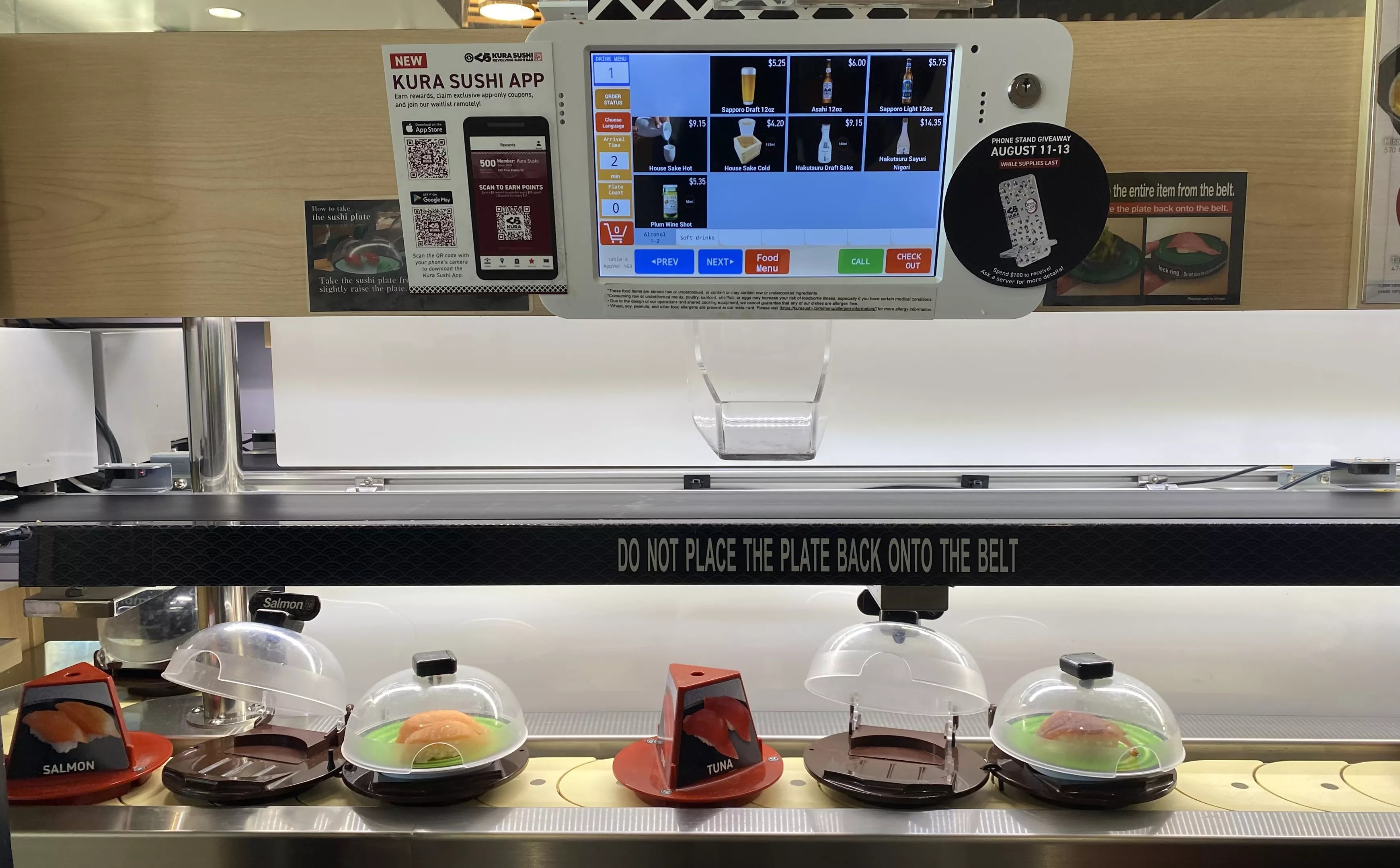 With origins in the Los Angeles and Long Beach area, California Fish Grill has expanded throughout the Golden State and into Nevada and Arizona – where it currently has two locations in Mesa and Phoenix. Its leadership claims to source from certified-sustainable fisheries and get its wild catches using the “least invasive means possible,” serving a wide array of seafood dishes like grilled and battered fish, tacos, salads and poke. Kura Sushi is known for its revolving sushi bar and touchpad order screens. Geri Koeppel