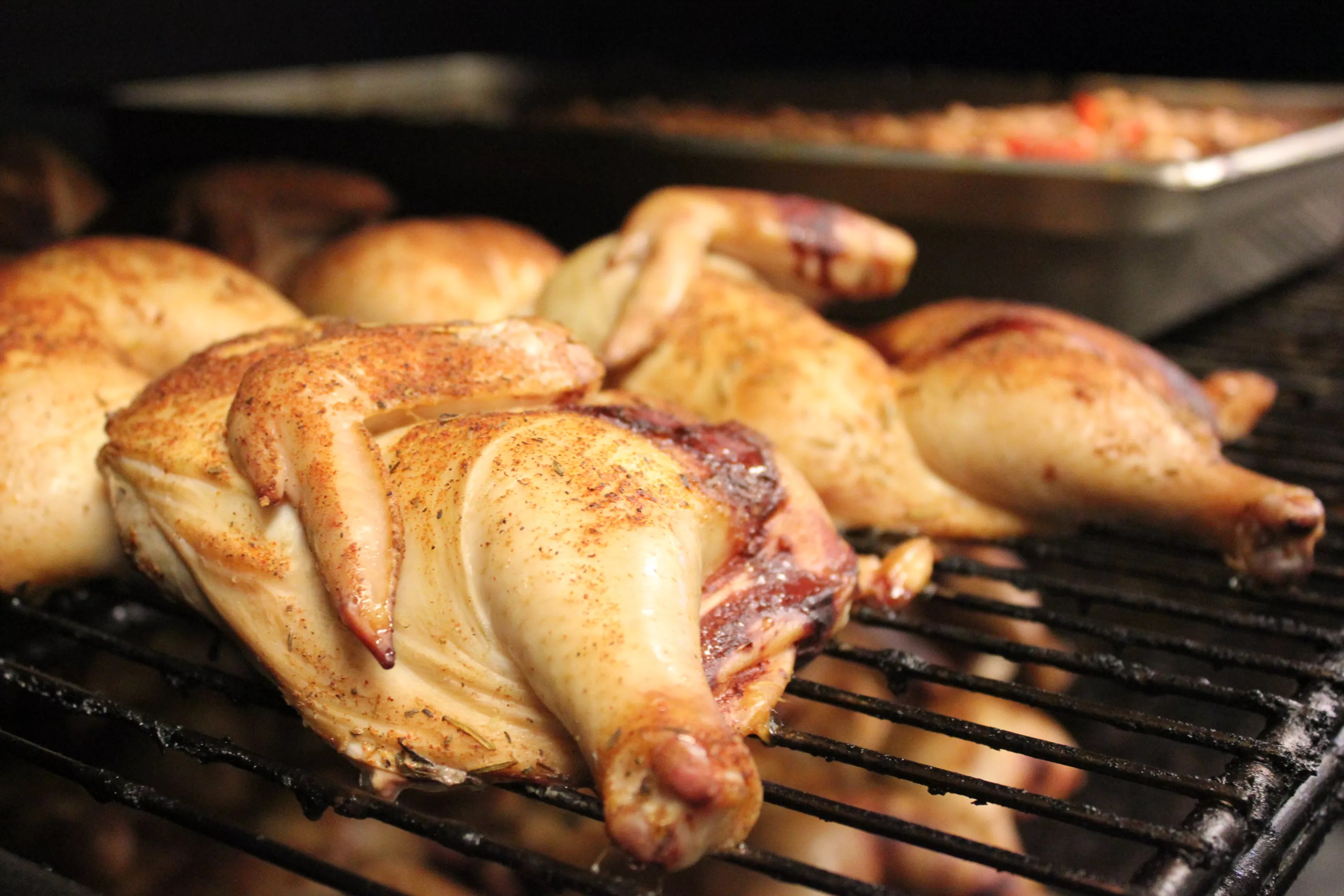Nichols' smoker can hold 162 half-chickens.