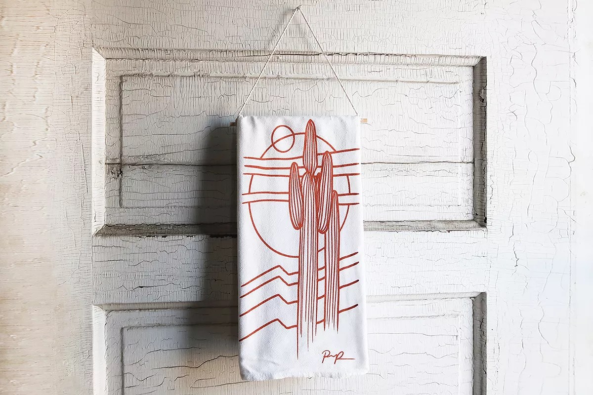 The only downside to Scottsdale artist Paige Poppe’s “Saguaros Eclipse” tea towel ($22) is … it’s almost too gorgeous to use.