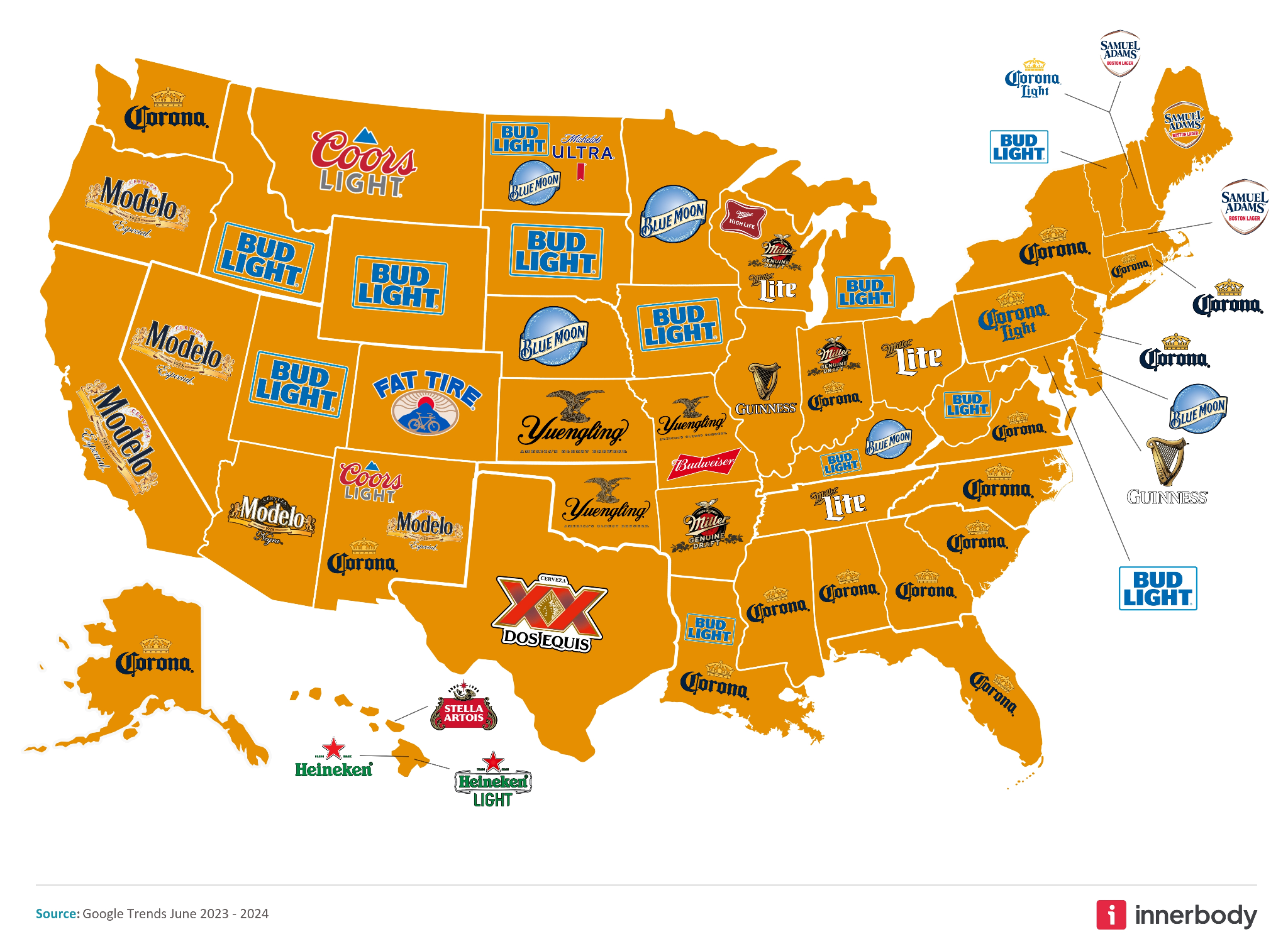 InnerBody’s study determined which beers are the most popular in each state. Arizonans love Modelo.