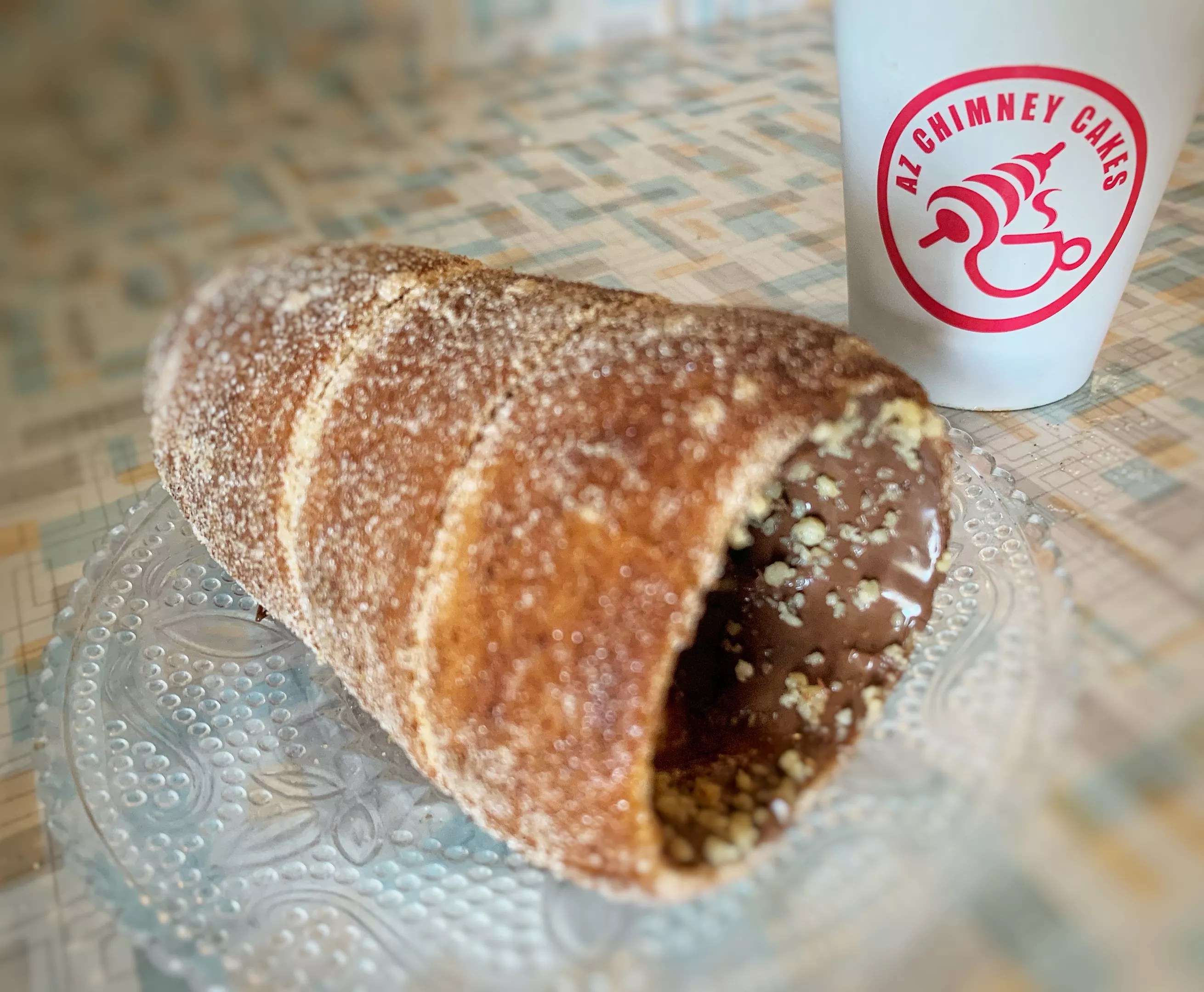 “That was the Lotus Biscoff,” said Williams, who opened her chimney cake café in late 2017 at the now-deceased Paradise Valley Mall. “When we were at PV Mall, we were starving to death. We would go out and stand in the mall and offer chimney cakes for free and no one would take one, because no one knew what they were. We sold a lot of coffee because we make excellent coffee, but Zaaron and I literally couldn’t give these things away.”