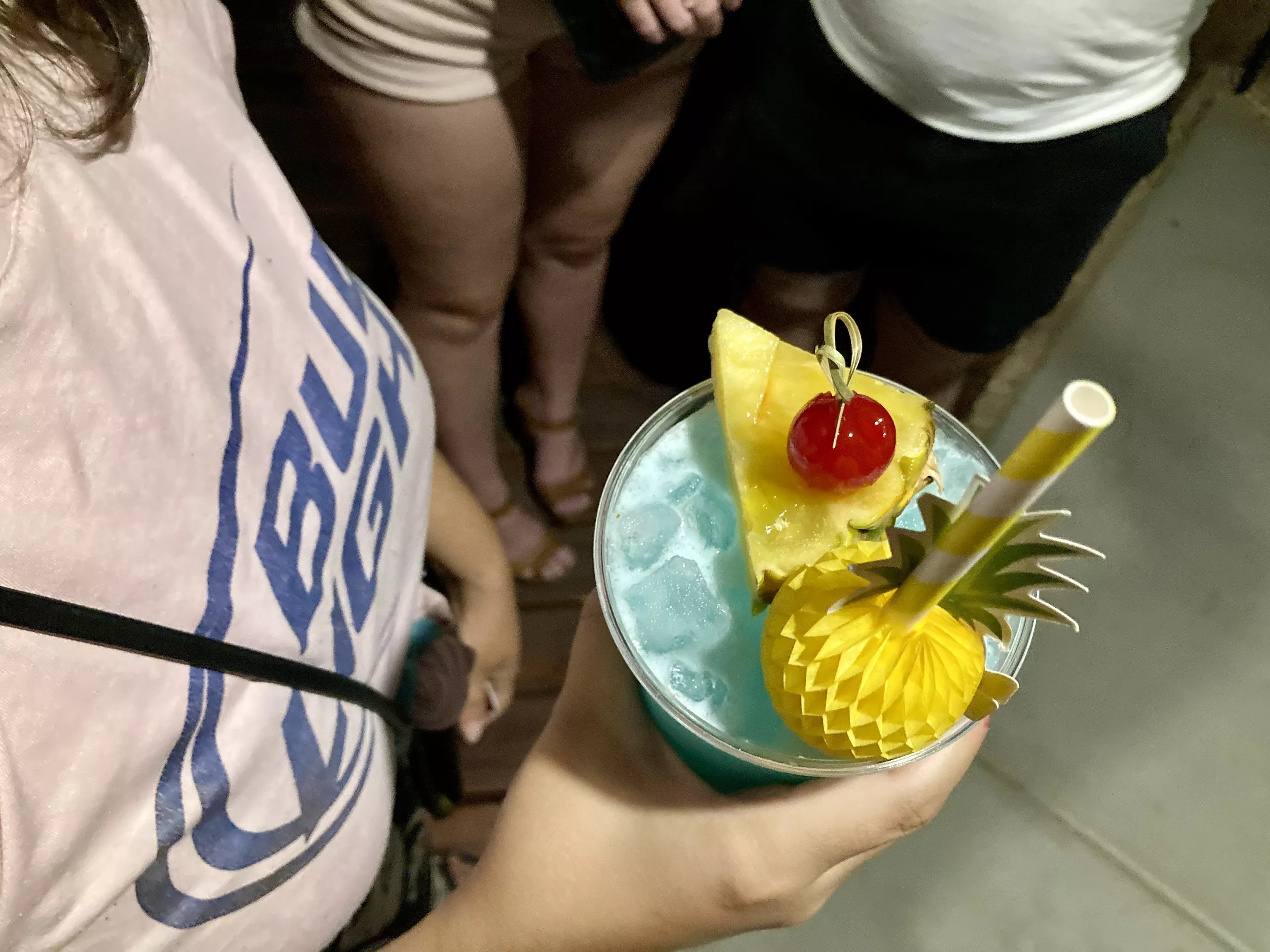The drinks are … sugary. They are very sweet. One member of our party bailed, both on the Mojito and the party, to go find a beer. Another took a few minutes to get used to the Blue Hawaiian (predicting a stomachache all the while) but then finished it within minutes. Turns out there was a Starbucks-level amount of ice in that cup.