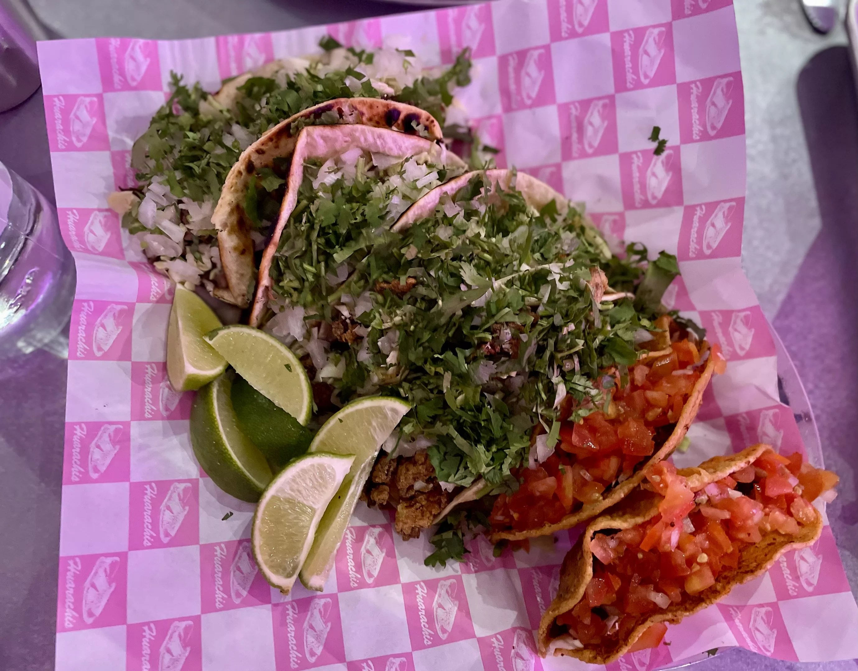 The menu at Huarachis is centered on tacos, including carne asada, fried mushroom and crispy potato.