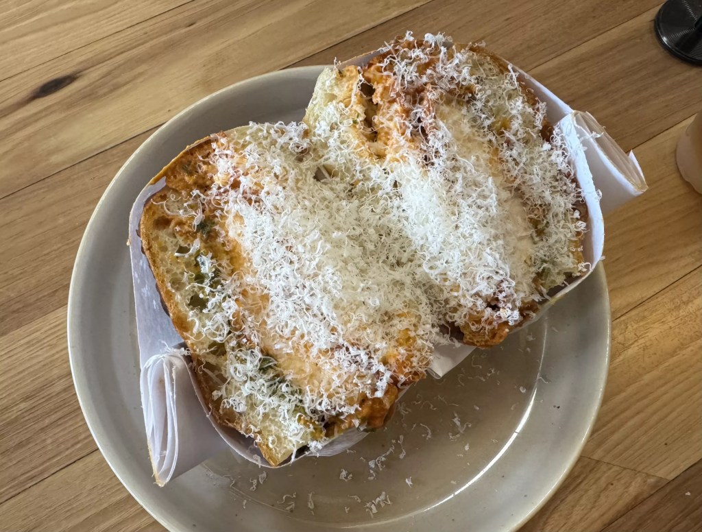 It is rare when a dish that goes viral online actually lives up to the hype (and the long lines that follow). The “Seinfeld”-referencing sandwiches on First & Last’s lunch menu nearly knocked us out of our seats at the airy downtown restaurant. These sandwiches start with an exceptional foundation. The housemade focaccia is crisp and sturdy on the outside, with a bubbly soft interior. The Little Jerry is a maximalist take on a chicken parmesan sandwich. A fried chicken cutlet is enveloped in gooey mozzarella, zesty vodka sauce and a bright basil pesto. The sandwich gets wrapped in paper, cut down the middle and presented with those halves facing up on a plate, buried underneath a mountain of freshly grated parmesan cheese. Take a deep breath, roll up your sleeves and get ready to unhinge your jaw to get into this sandwich. Your reward is a complex bite that is at once tender and comforting with the right amount of crunch, sweetness and spice. It’s cheesy and rich with an herbaceous burst. This is a knockout sandwich that, to quote Kosmo Kramer on Little Jerry, is “struttin’ his stuff.”