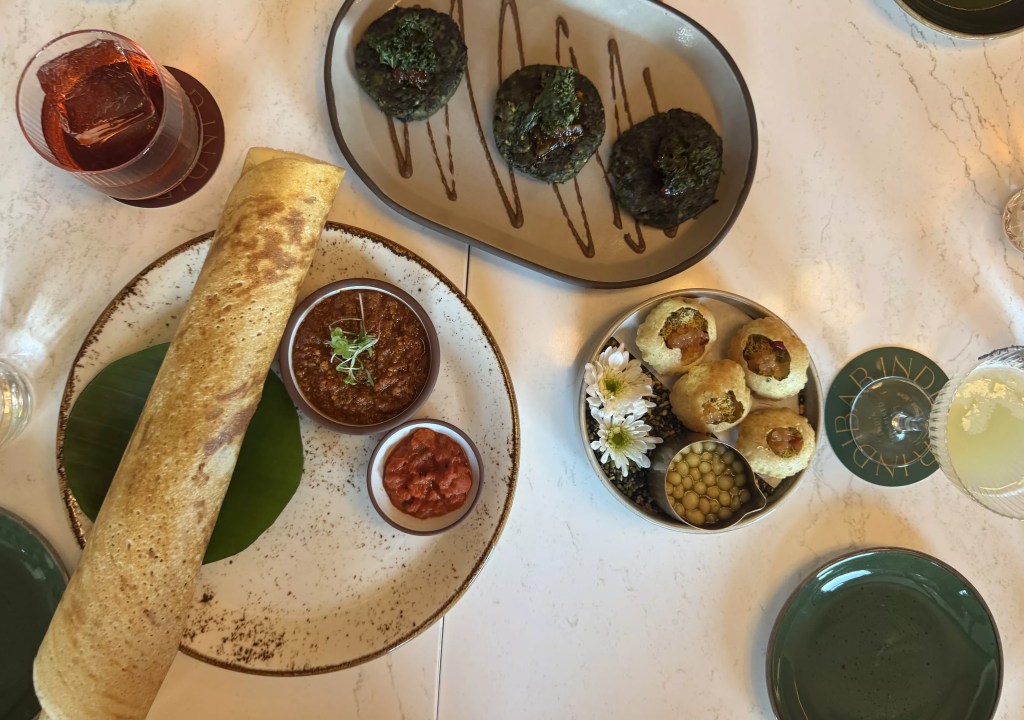Indibar offers a range of shareable starters, including Kheema Dosa.