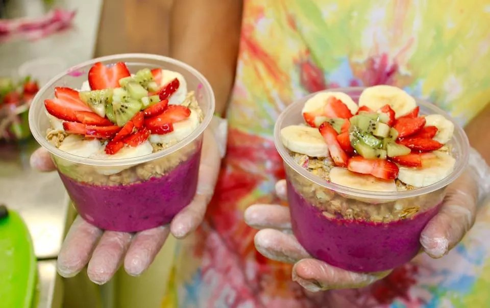 Taquitos Jalisco Shakily dig into a Pretty Pink Pitaya bowl. Berry Beet Juice Bar