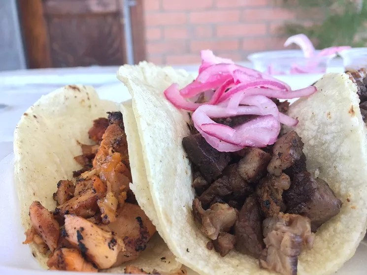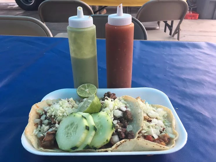 The recipe behind the signature taco of this Broadway Road food truck, the tacos ahogadas, took co-owner Alma Kerby 10 years to perfect. Three taquitos shaped like rolled-tortilla cigars submerge in a thin tomato broth peppered with jalapeño. Melted cheddar clings to the yellow lengths. The broth is nimbler and more refreshing than heavy, and the tacos have a nice, not-yet-sogged crisp that gives way to decadent beef inside. The Drowning Taco, both the business and the dish, are a nice addition to the local truck scene. So, too, are the more standard flour tortilla tacos, packed with the likes of creamy cabeza and char-tipped carne asada, all lavishly topped with cilantro and an avocado-based salsa.