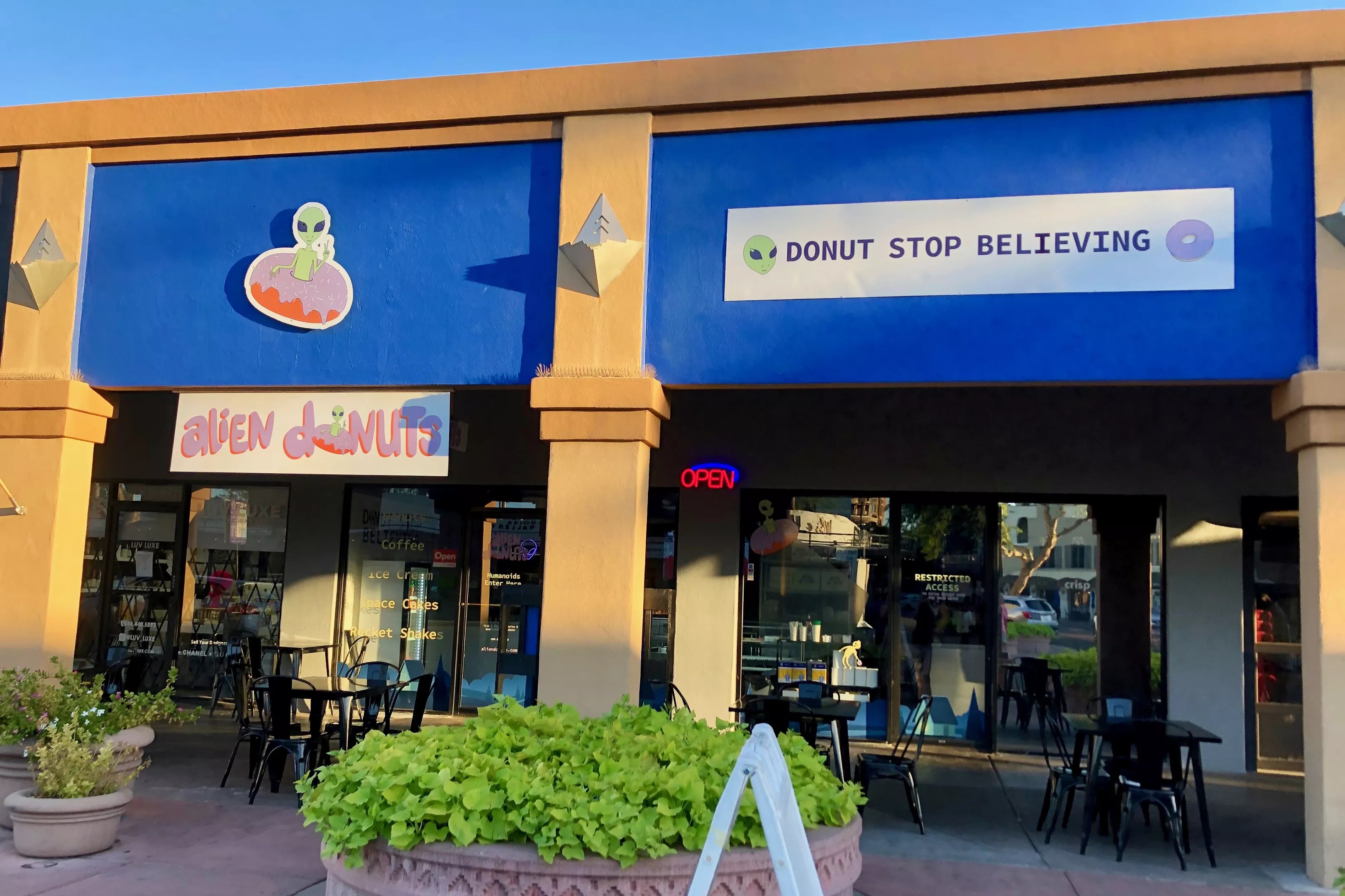There’s a special part of Old Town Scottsdale where a gourmet doughnut shop has more or less invaded. Alien Donuts, a.k.a. the Mothership, landed on Fifth Avenue in 2018 and keeps its display case loaded with delicious space-themed treats. Divided into specialty and classic doughnuts, the menu lists fun orders like the Chocolate Spacecake, Red Planet, Cinnamon Vortex, and Alien Ice. Some treats get extra cheeky, like the Moon Rocks doughnut holes, the Alien Probe bar-shaped doughnut, and the Space Jam doughnut – which is just a traditional jelly doughnut with chocolate and sprinkles and has nothing to do with Michael Jordan or Bugs Bunny. The alien chefs here get crazy with Savory Sundays, topping their doughnuts with sausage and gravy, chicken and waffles, and pulled pork and spicy barbecue. Alien Donuts also offers coffee, ice cream, something called a Rocket Shake, and vegan options. They deliver, too.