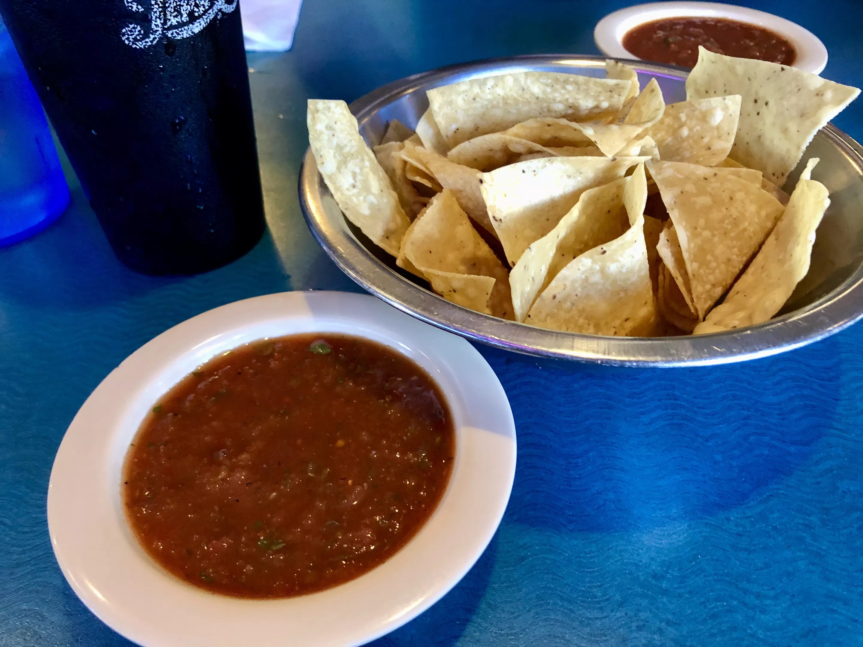 The family-owned Mi Patio has been around since 1984, the dining room aesthetic classically kitschy and open daily from 10 a.m. to 10 p.m. During that window, you can be served with as many bowls of chips and dishes of salsa as you can handle. Mi Patio is known, far and wide, for super-fast chip service. Warm bowls of tortilla chips come right away, and to make them somehow better, give them an extra dusting of salt. The ultimate salsa? Ask for a side of the seafoam-green Baja sauce. You’re welcome in advance.