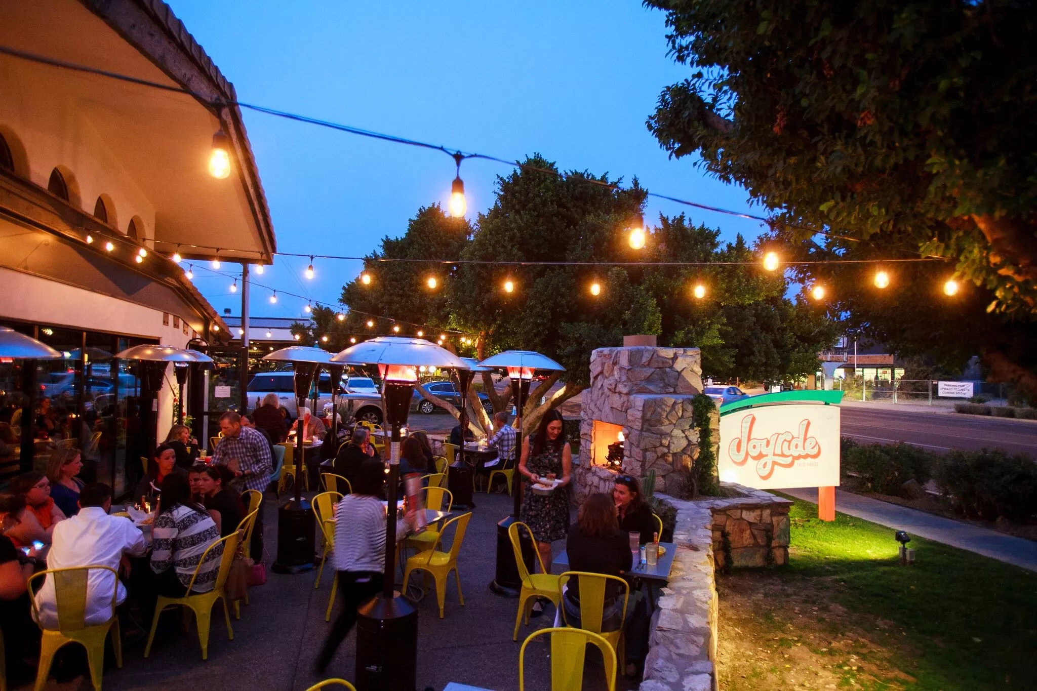 Get cozy on the patio at Joyride Taco House.