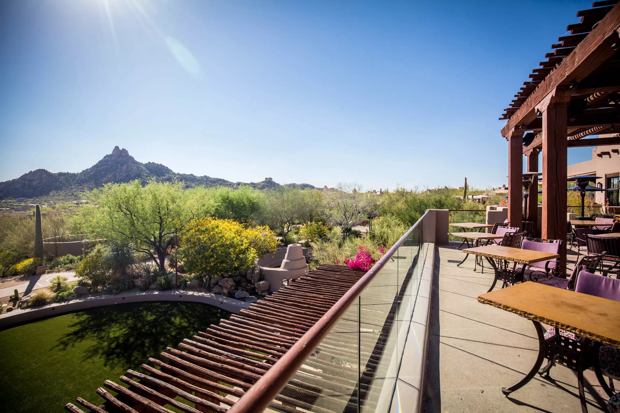 The outside dining area at Ocotillo offers multiple different patio and garden options.