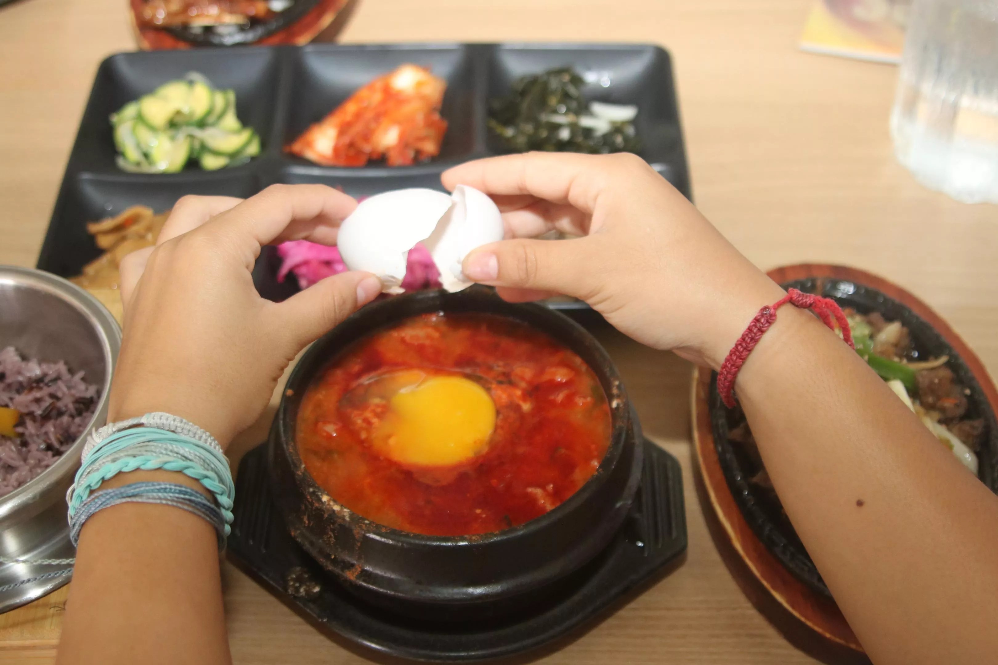 Each tofu soup comes with a raw egg; by tradition, the diner cracks the egg and poaches it inside the piping-hot soup.