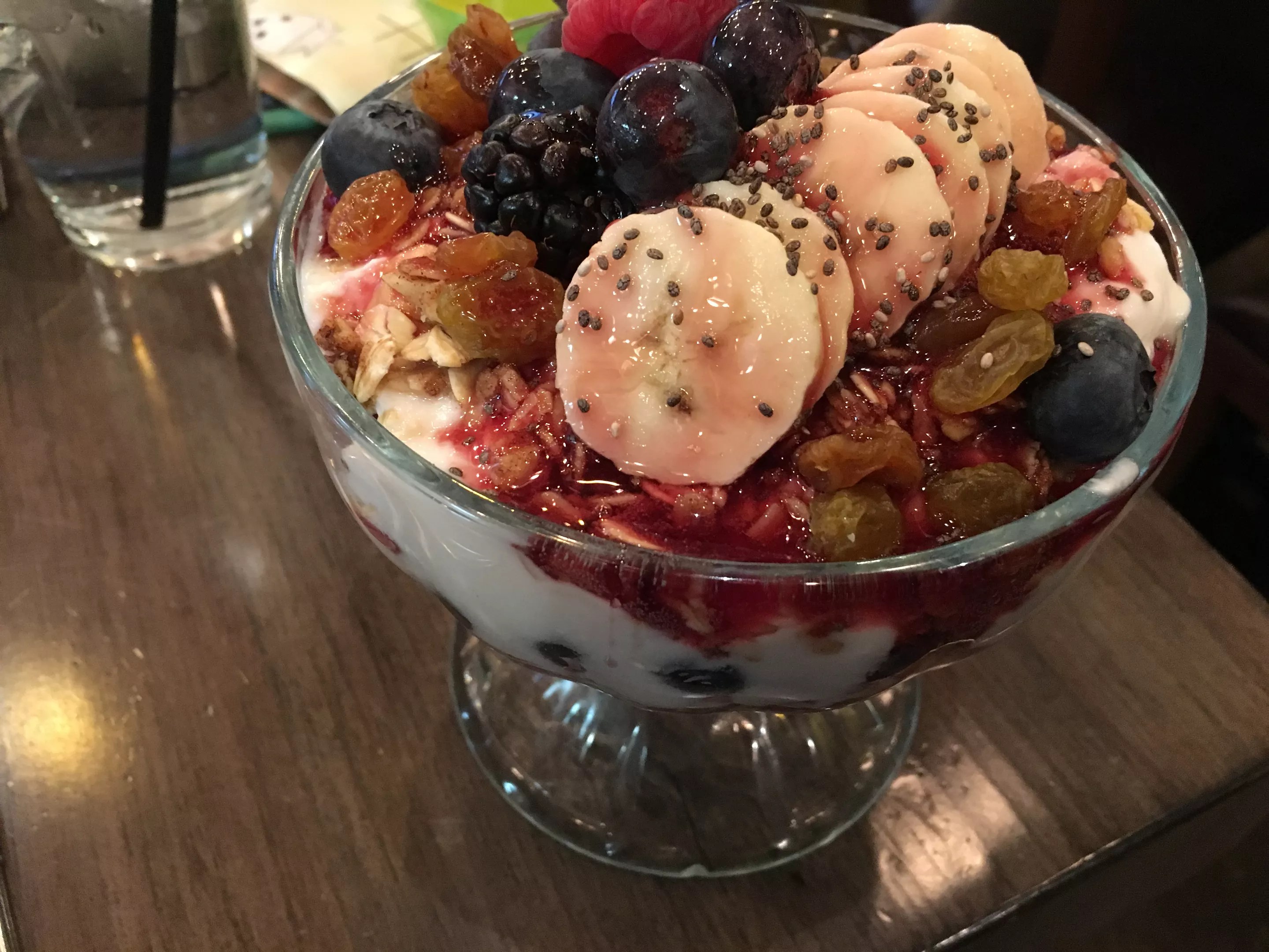 The yogurt with berries is sweet, the fruit quotient intensified with a raspberry puree. One of the bowls features house-made cauliflower cakes and a monster scoop of smashed avocado. The cakes are interesting – veggie-burger-like in texture and with the warm, toasty flavor of cauliflower. They soak up egg yolks (if you’ve ordered the bowl’s eggs runny, that is) in the best kind of way, and leave you feeling good after. Enough yogurt to feed a giant Chris Malloy