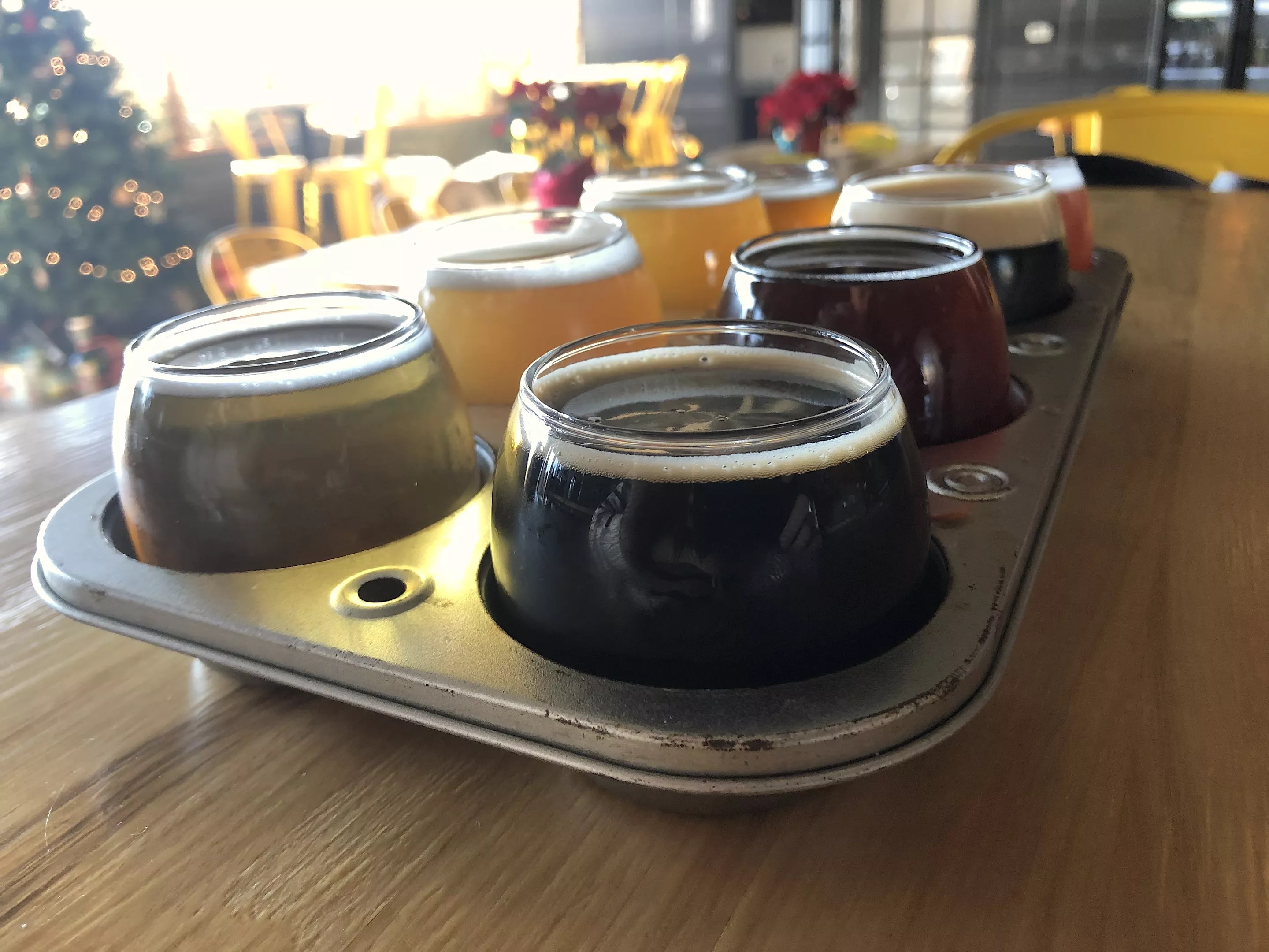 A flight of eight beers at Helton Brewing Co.