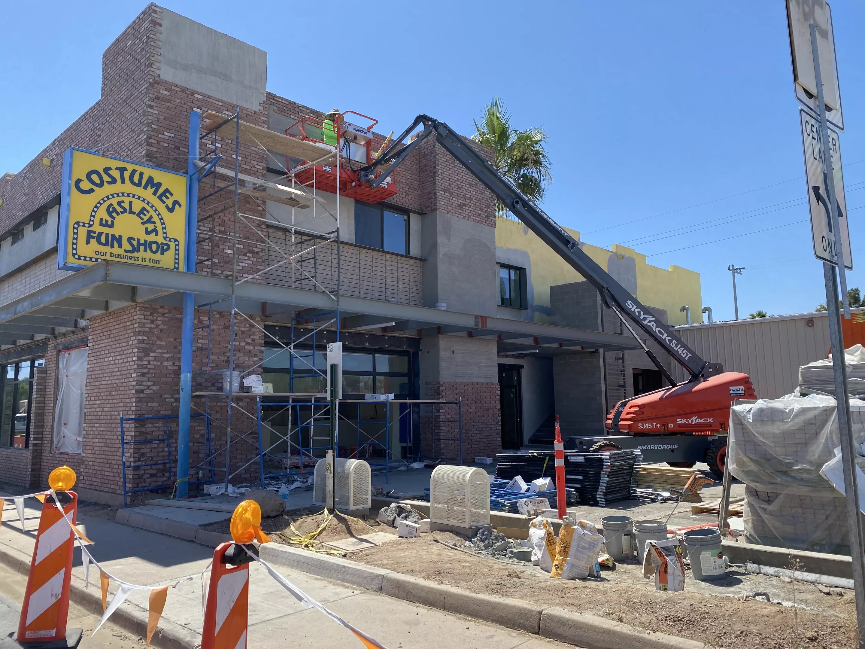 At Fifth Avenue and McDowell Road, next to the newly-opened brewery Rose’s by the Stairs, a construction crew works on a brick building in triple-digit heat. “We’re hiring,” a sign out front reads. “Opening soon,” says another.