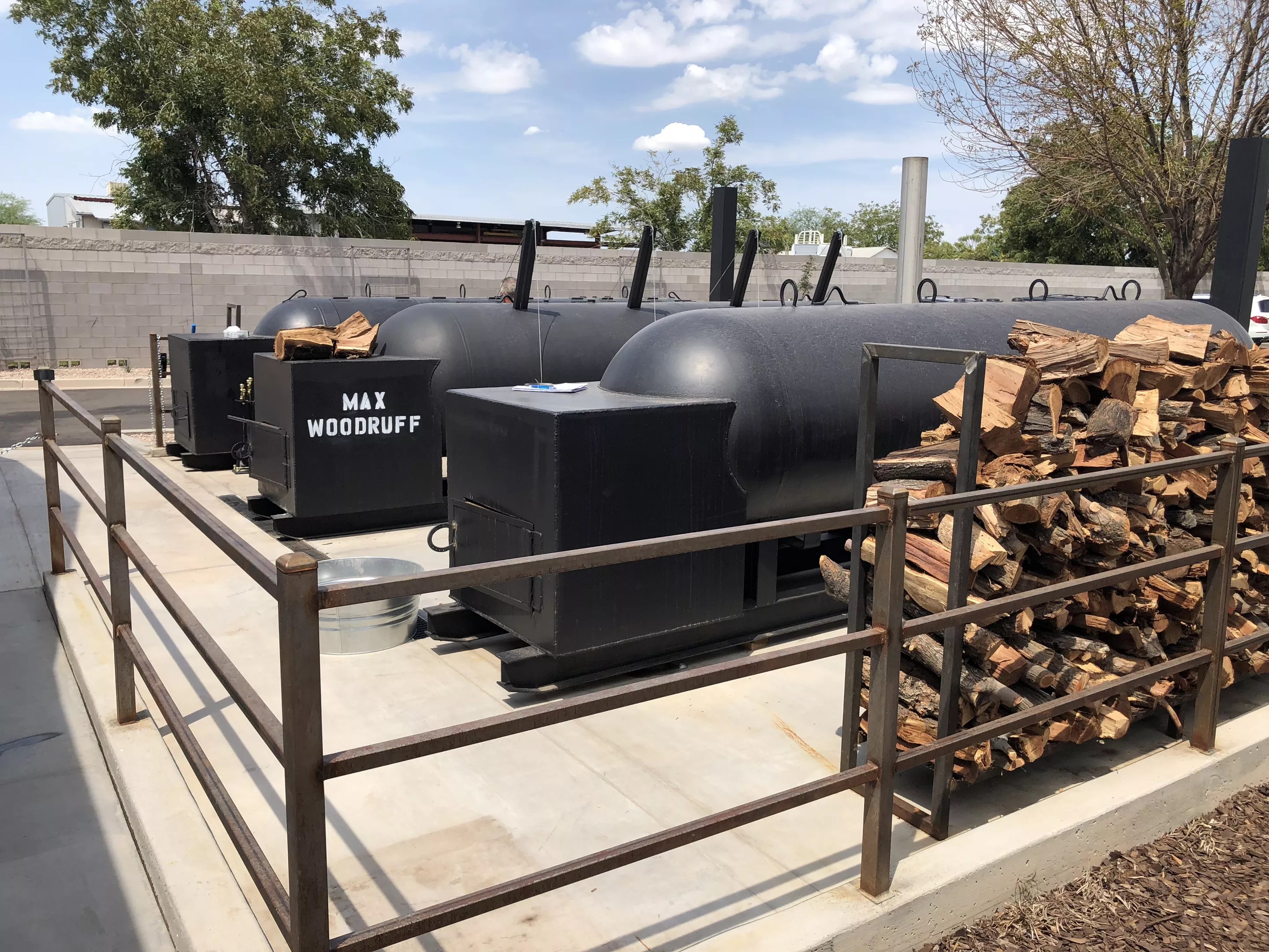 Three Texas-style offsets puff away behind the restaurant.