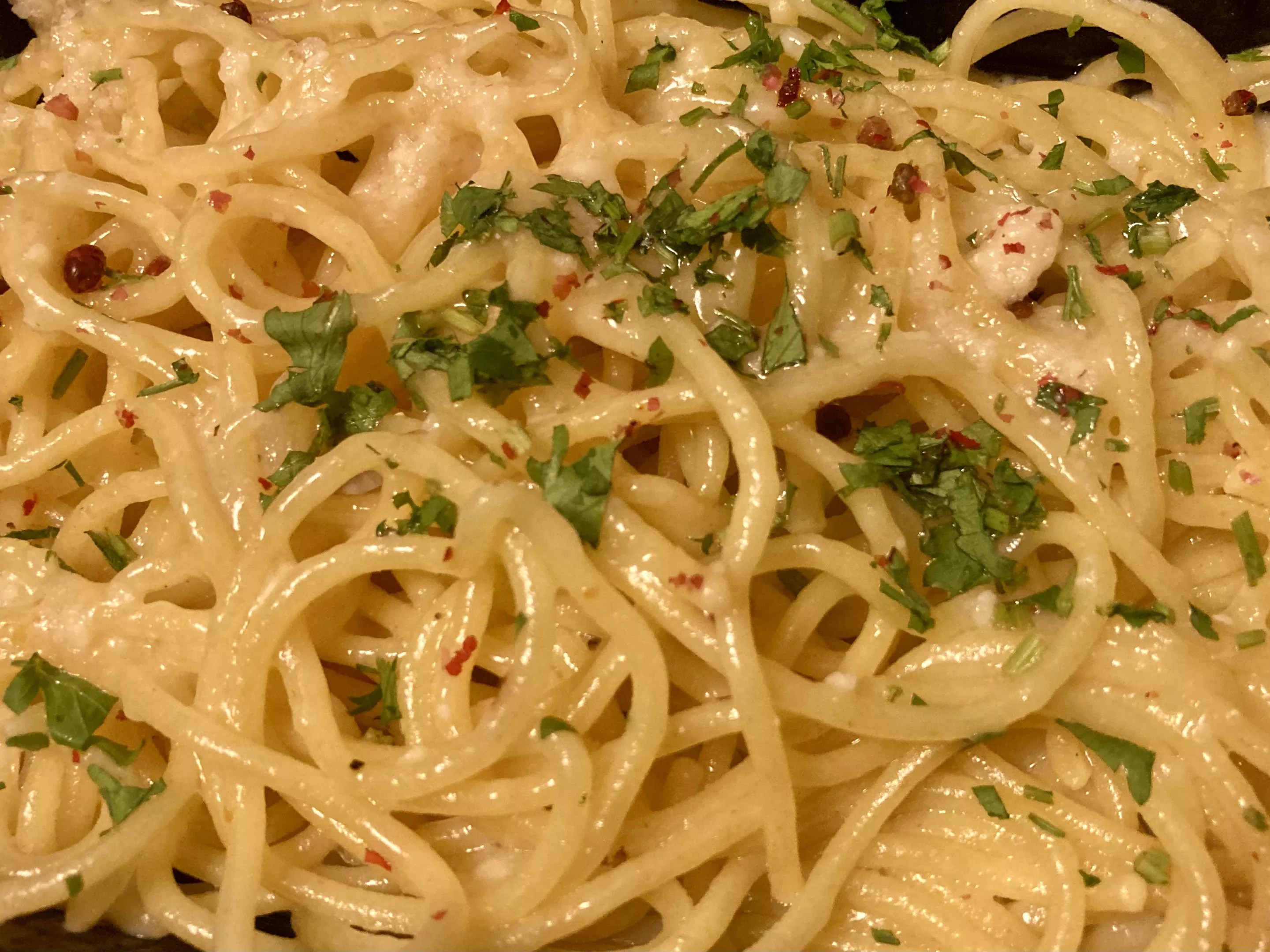 Pasta was a must. The ultra-light-sounding Spaghetti Cacio e Peppe caught our eye. This was a simple dish of twisty Sonoran Pasta Co. spaghetti made with organic durum wheat – or so the menu states. It was dressed with cracked pepper, olive oil, and more pecorino cheese. It was also baked? Or at least the top layer was shell-like. We’ll be honest: This dish was mostly ignored. It worked better the next day heated up and salted.