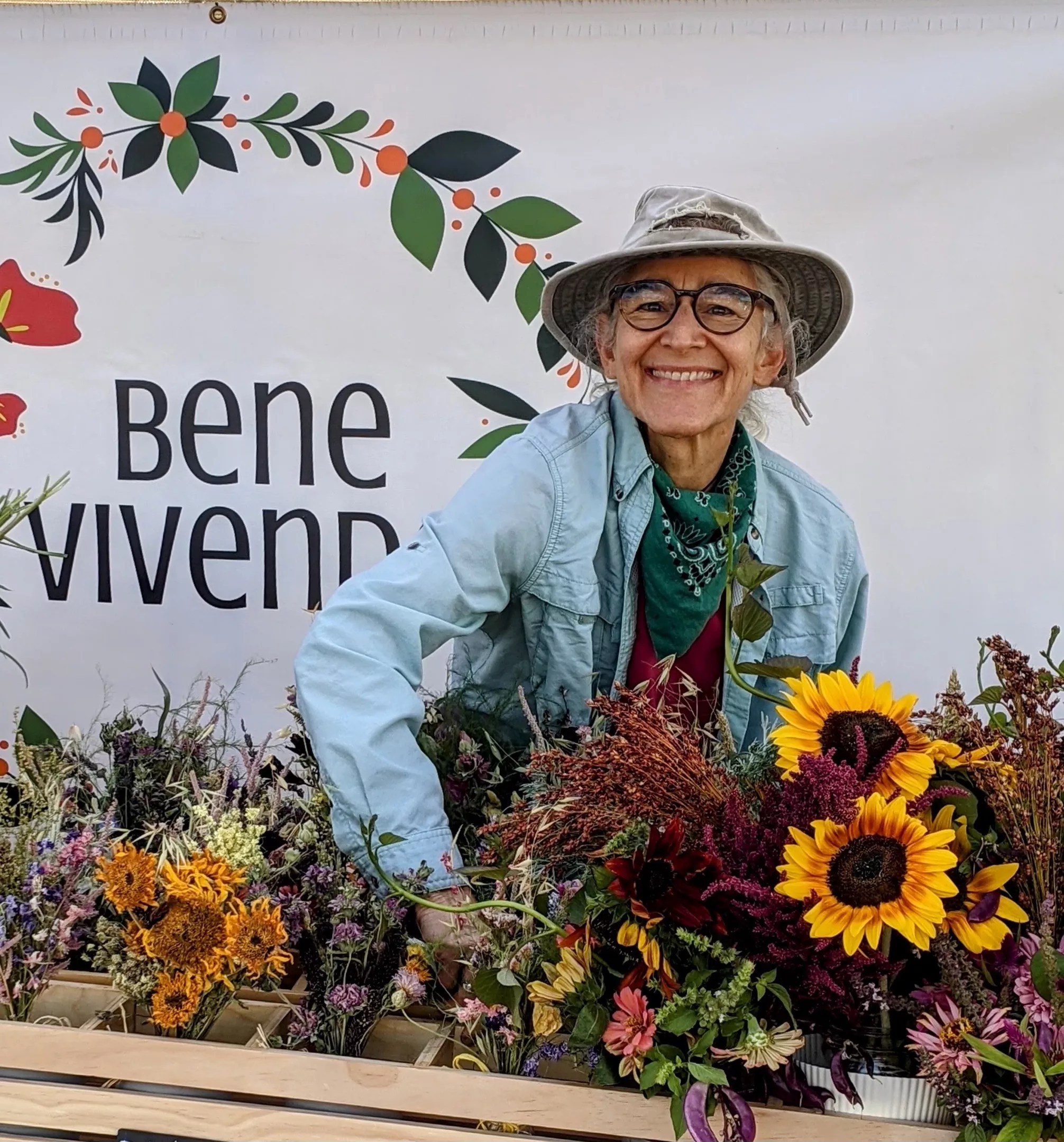 On Wednesdays and Saturdays, as you walk through the Uptown Farmers’ Market, you will likely spot a booth named Bene Vivendo, which means “The Good Life.” Dried wreaths hang from the awning, and you can smell fresh herbs like oregano and basil and admire the aromatic hibiscus tea mix packets, as well as the colorful edible flowers.