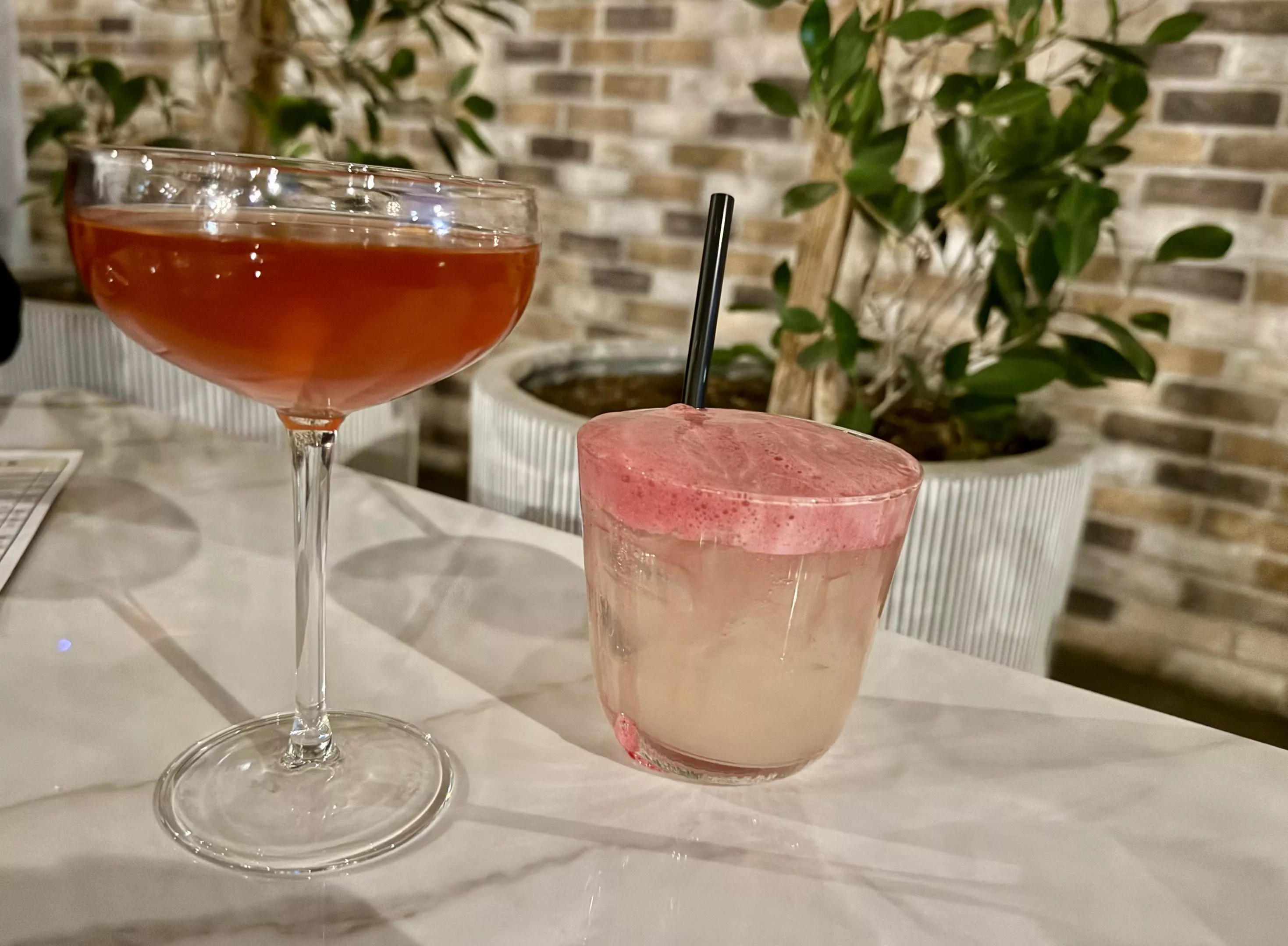 Once seated, we got comfortable on the resort-like patio in black woven chairs pulled up to marbled stone tables. The ficuses and cypress encircling the outdoor space swayed in a gentle breeze. Light and shadows of the rattan pendant lights danced across the walls. It was well-appointed but comfortable.