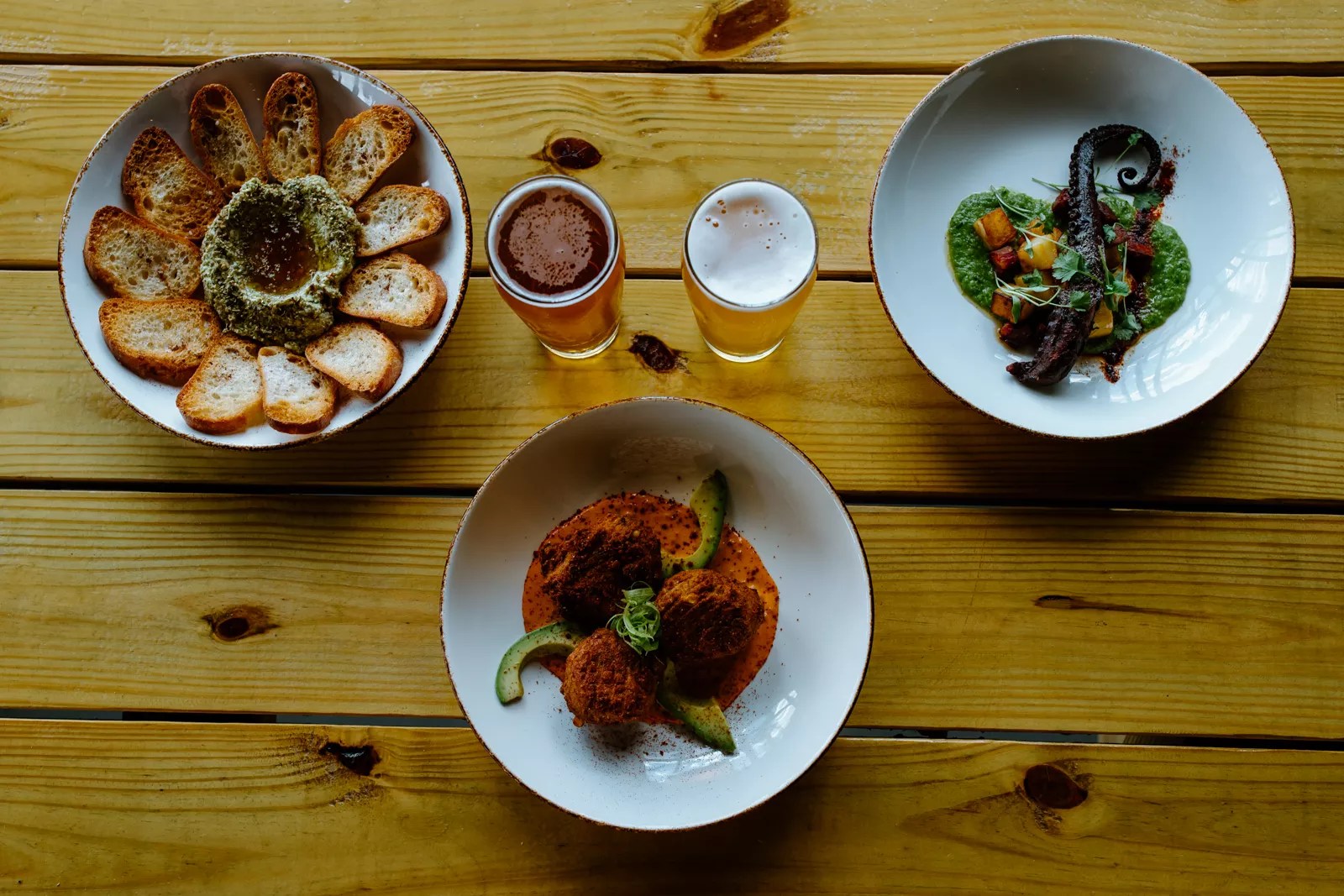 As former colleagues working in the restaurant industry in California, Hass and Martinez saw a need for breweries with interesting and unique food menus. At the time, most breweries in California either didn’t have kitchens or they rented food trucks, Martinez says. The duo decided to do something different, while still providing the classics.