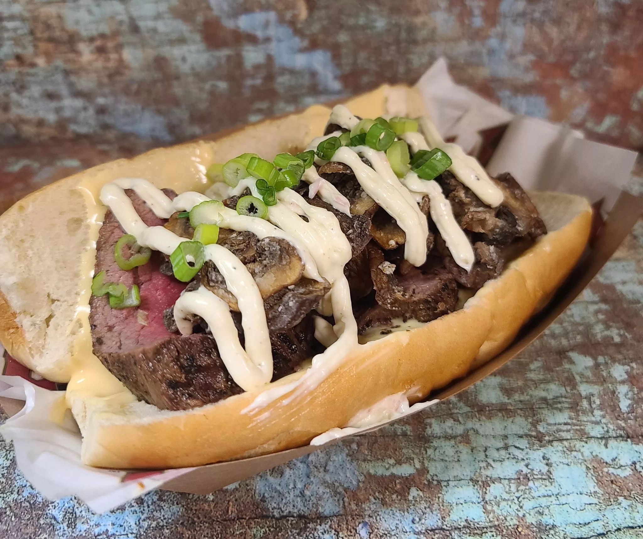 Copper State Steaks, Section 120 Whether or not this sandwich’s name describes the people who can afford a ticket to the World Series is another question. What we do know is that this dish is an extravagant option. A brioche hoagie is filled with sliced beef tenderloin, black truffle cheese sauce, crispy mushrooms and garlic herb aioli.