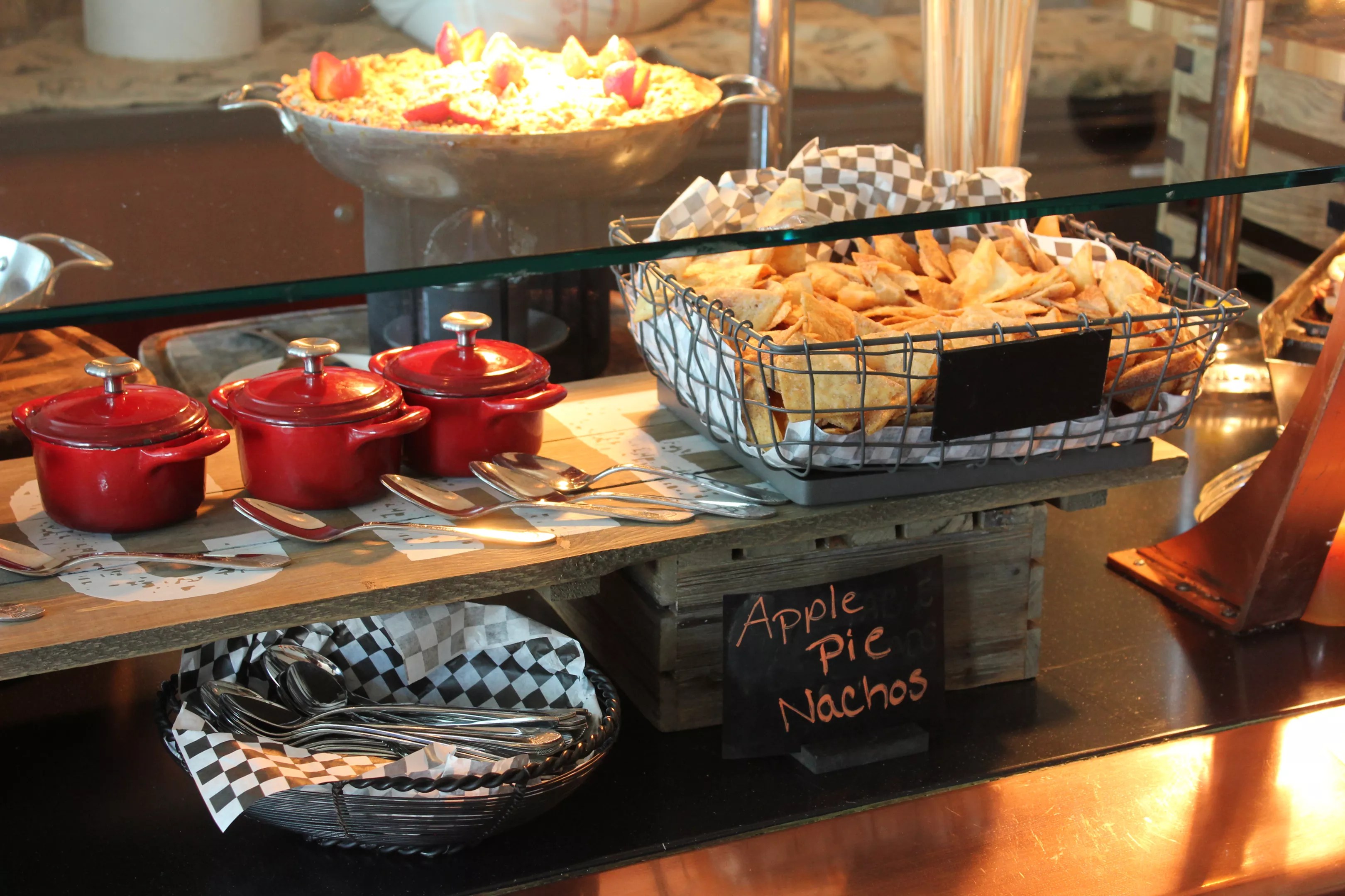 Apple pie nachos awaiting hungry baseball fans at a Chase Field restaurant.