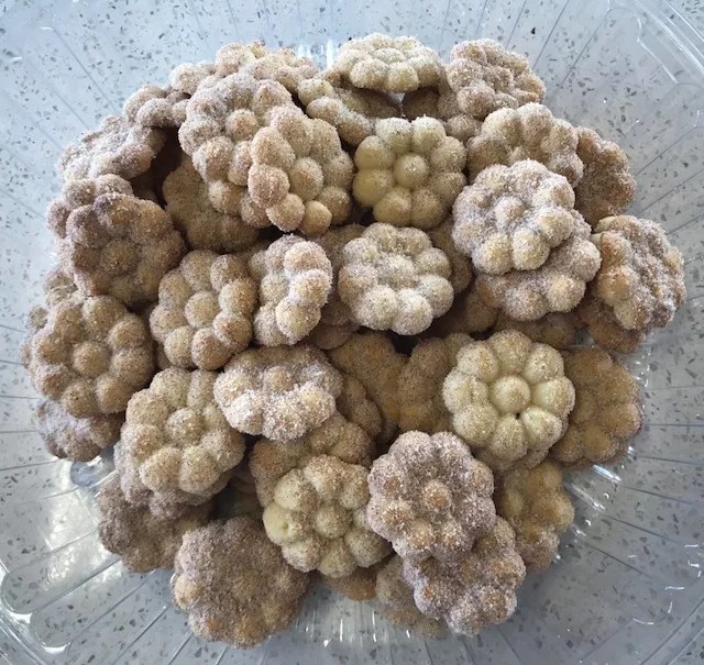 Biscocho cookies are created by tossing the base cookie in cinnamon and sugar. Owner Gilbert Tapia includes a dash of Amaretto in the dough for depth of flavor. The dough is then molded to look like flowers. “It is so good, we believe it is our duty to share it with everyone,” Tapia says.