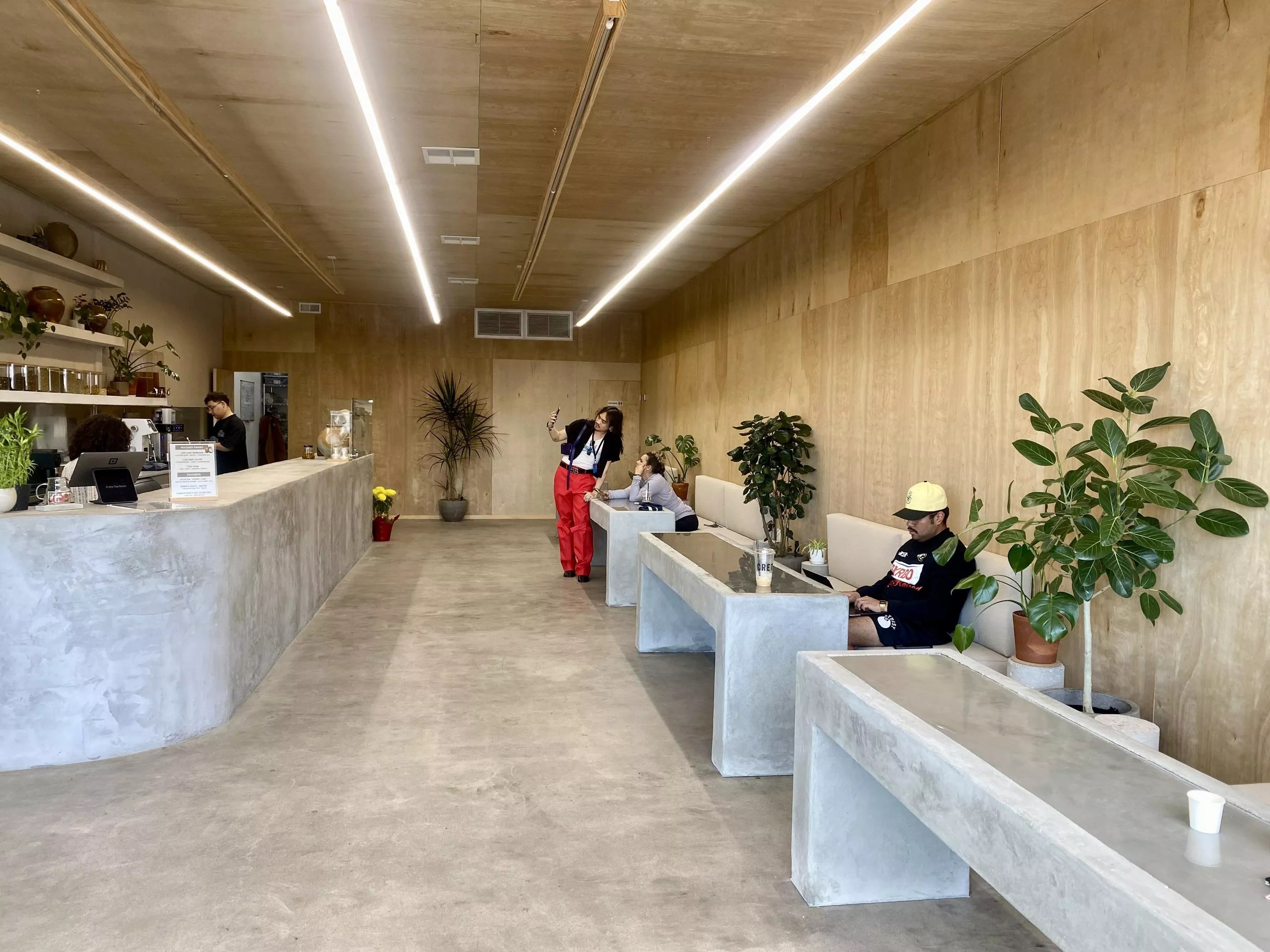 The space is a minimalist’s paradise. There’s no clutter here, just concrete floors and counters, beige walls and simple built-in seating punctuated by an occasional plant or Buddha statue. The Instagram photos almost take themselves.