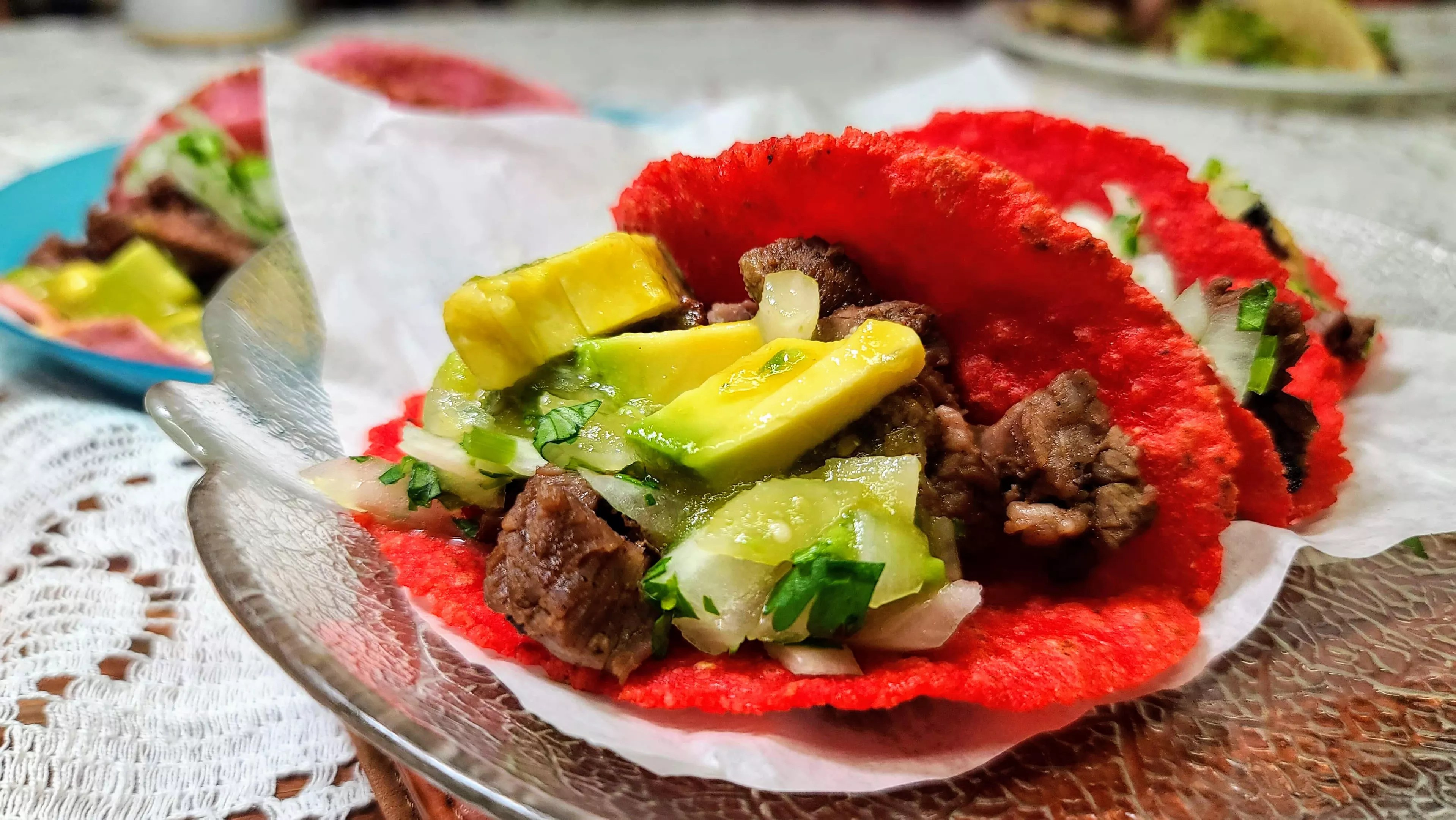 1870 West Main Street, Mesa The carne asada tacos served on house-made Flamin’ Hot Cheetos corn tortillas look striking. Tru Tacos